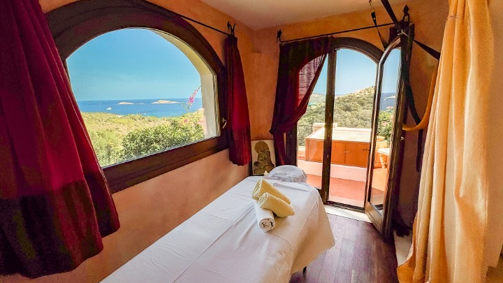 Il piano superiore è interamente dedicato alla suite padronale: una spaziosa camera matrimoniale con bagno en suite, zona relax e area yoga, oltre a una magnifica terrazza panoramica con vasca idromassaggio, da cui si gode di una vista incomparabile sul mare e sul paesaggio circostante.