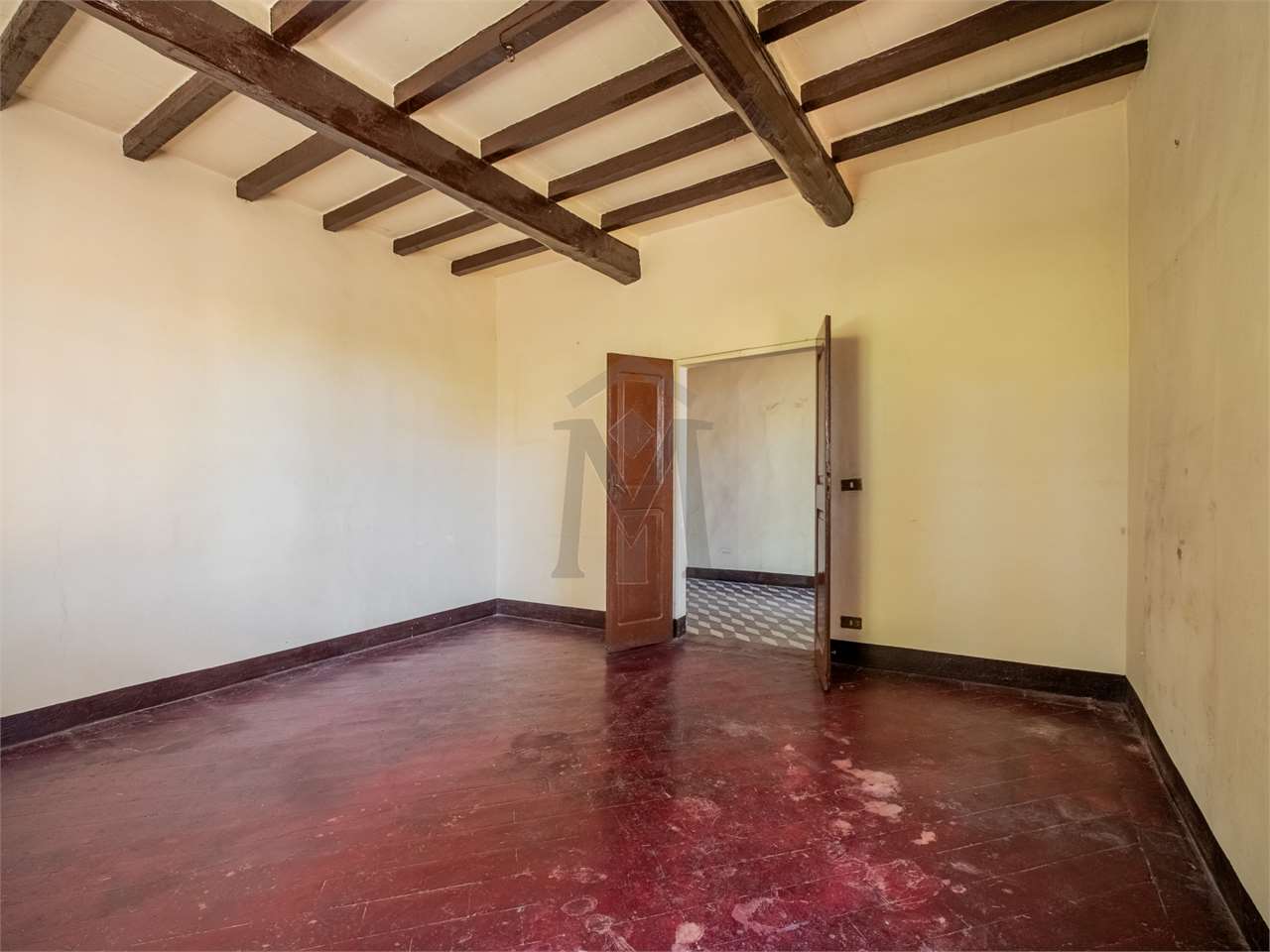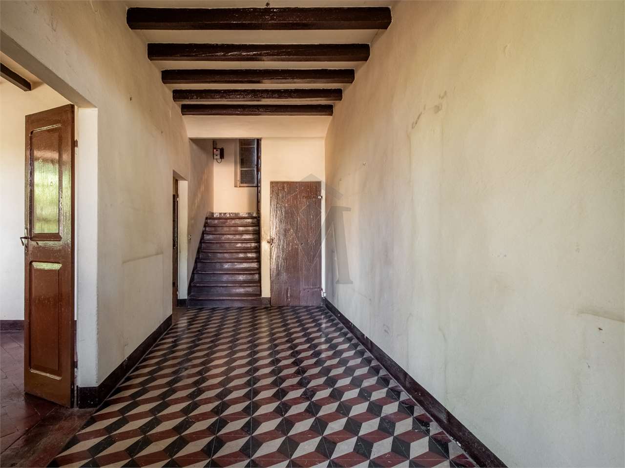Al piano terra, a dividere l’abitazione dalla stalla, di ca. 110 mq, portico e porta morta di ca. 60 mq, al primo piano fienile di ca. 90 mq con soppalco.