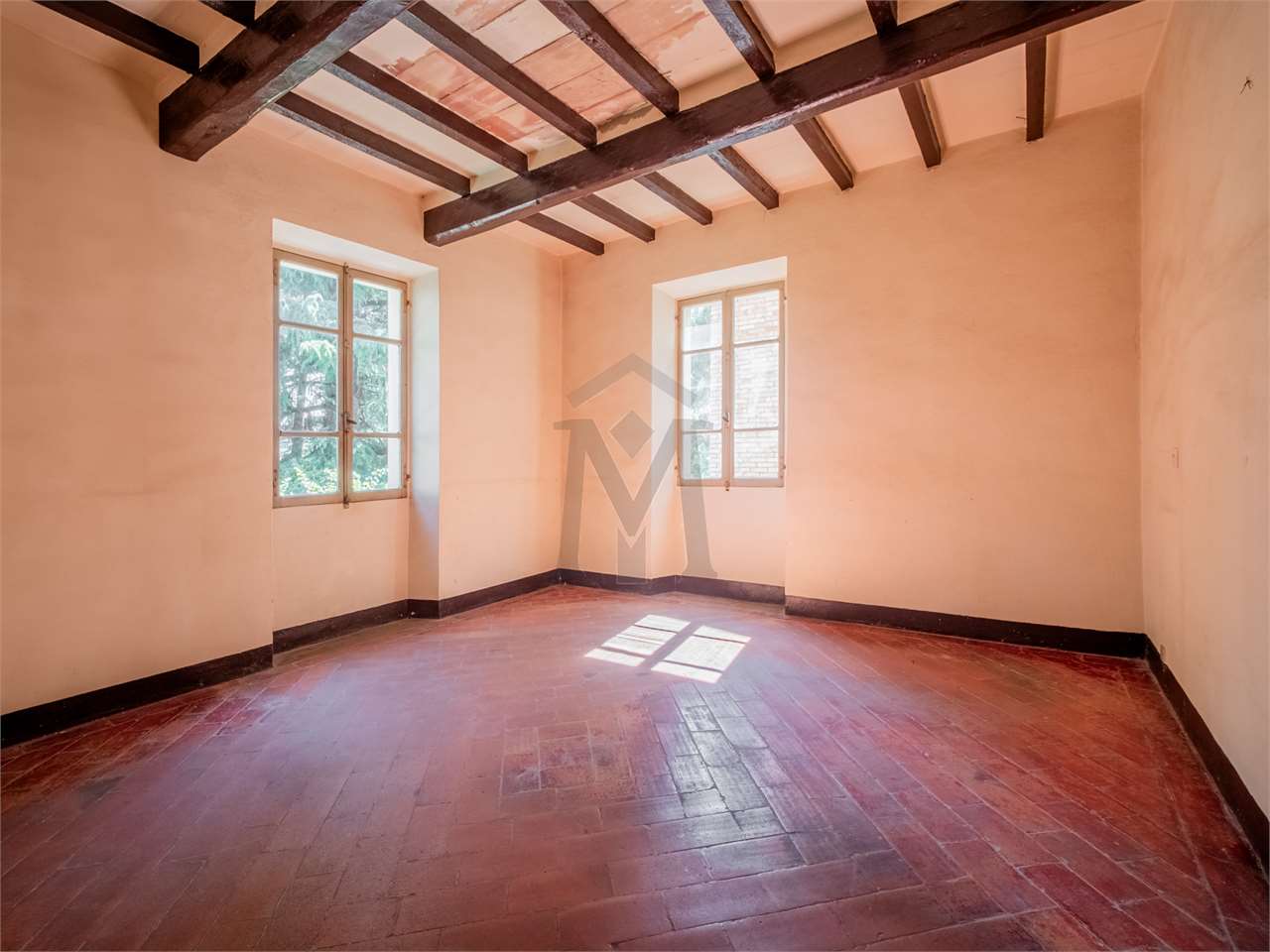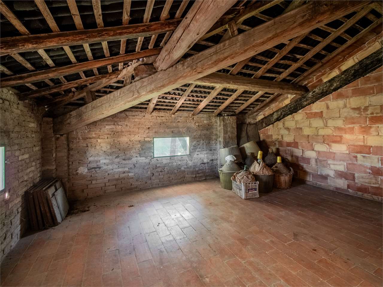 A Bibbiano, località Corniano, proponiamo ampia casa storica di campagna con una unità abitativa, stalla, fienile, autorimessa ed oltre 2.000 mq di terreni agricoli attigui. La casa, di ca. 220 mq su tre livelli, è composta da: al piano terra ingresso, soggiorno, cucina e tinello, cantina e stireria; al primo piano disimpegno, due camere matrimoniali e soppalco; al secondo piano tre vani sottotetto, infine al piano interrato due vani cantina.