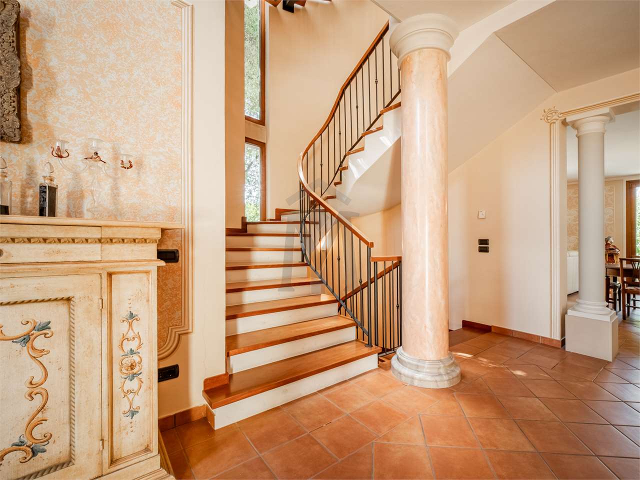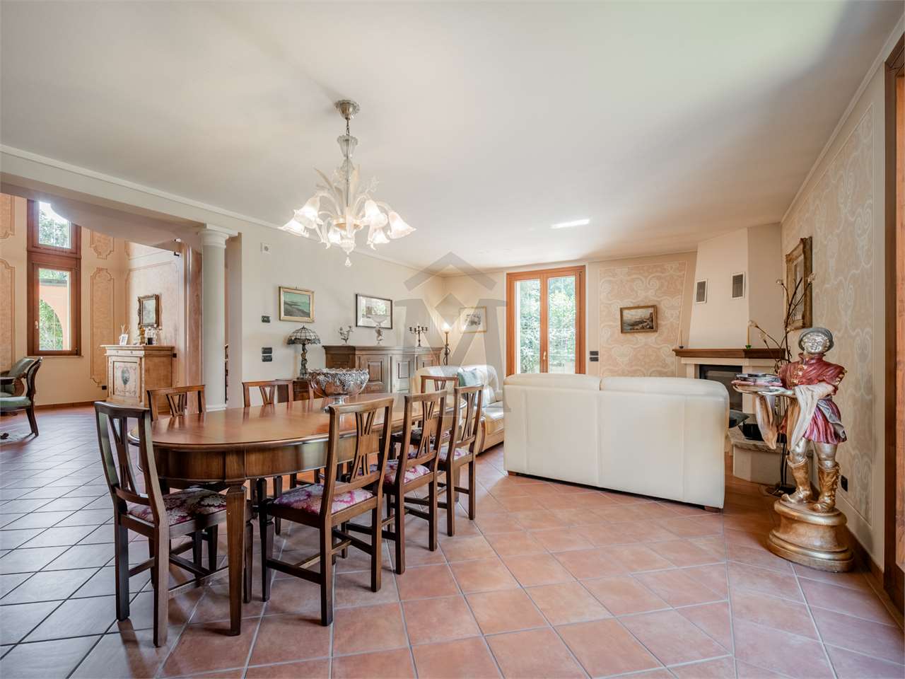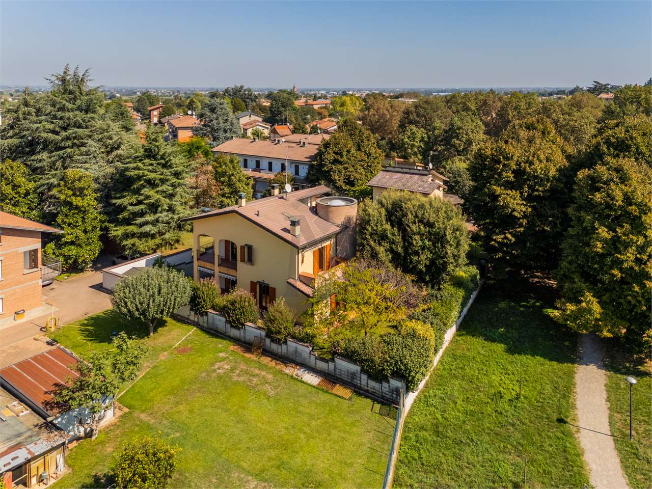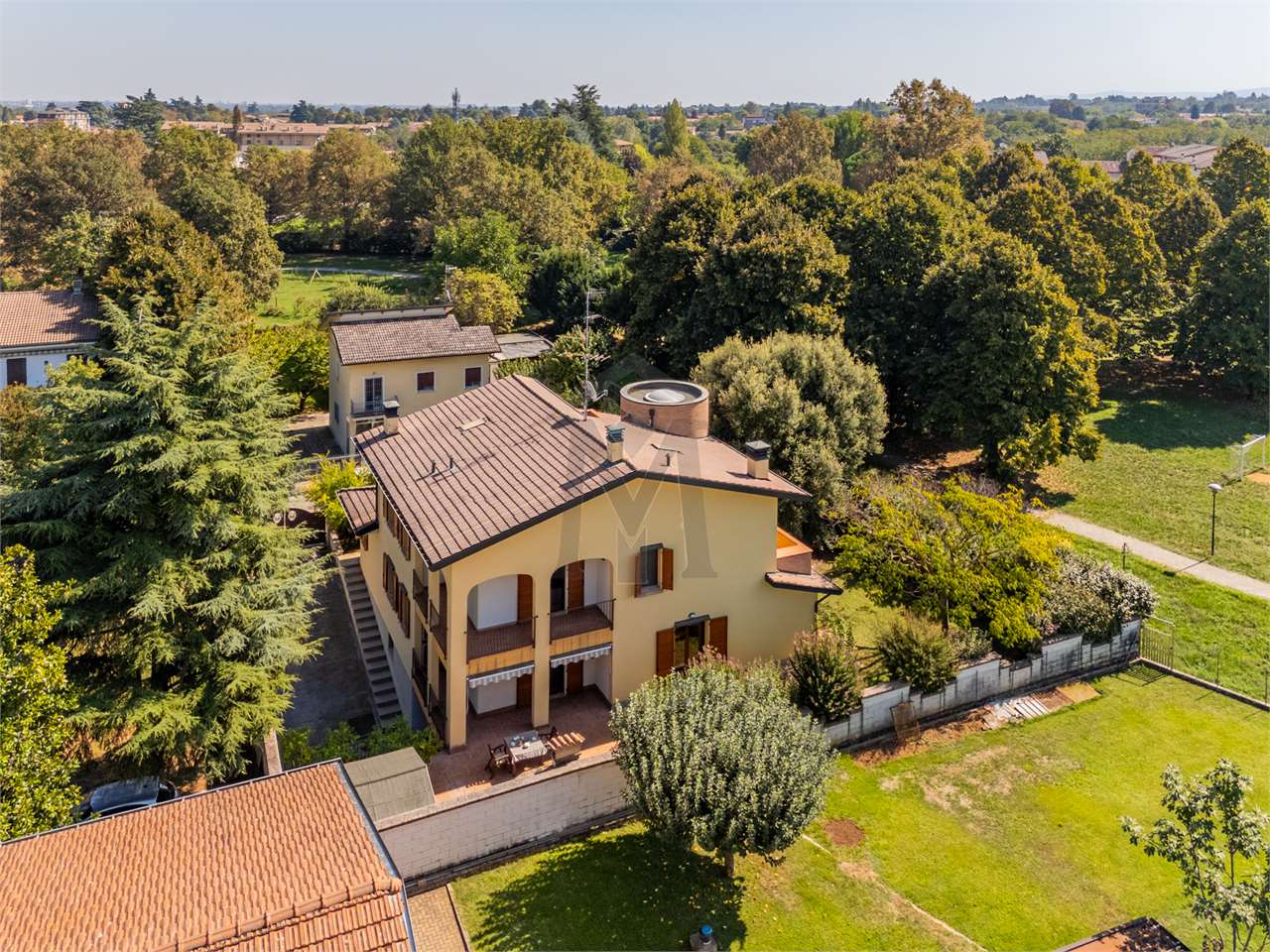 A poca distanza dal centro di Cavriago, in zona tranquilla nei pressi del Parco del Cerchio, proponiamo elegante villa singola, costruita nel 2002, di 440 mq su tre livelli fuori terra, ed oltre 570 mq di giardino esclusivo. La proprietà è composta da: al piano terra soggiorno con doppio volume, sala da pranzo, cucina con bellissimo portico e forno a legna, disimpegno, bagno e sala biliardo; al primo piano disimpegno con vista sul soggiorno, prima camera matrimoniale, con cabina armadio e balcone, bagno, seconda camera matrimoniale, con loggia, e terza camera matrimoniale, con bagno e balcone. Al piano secondo, ampio terrazzo e tre vani sottotetto; infine al piano interrato cantina, bagno e lavanderia, locale depuratori, locale contatori, ed autorimessa di oltre 60 mq, con ampio porticato. Un’abitazione unica caratterizzata da un’estrema cura dei dettagli ed arricchita da finiture di assoluto pregio, con ambienti luminosi e accoglienti, pensati per offrire la massima qualità abitativa.