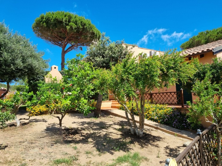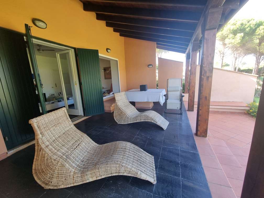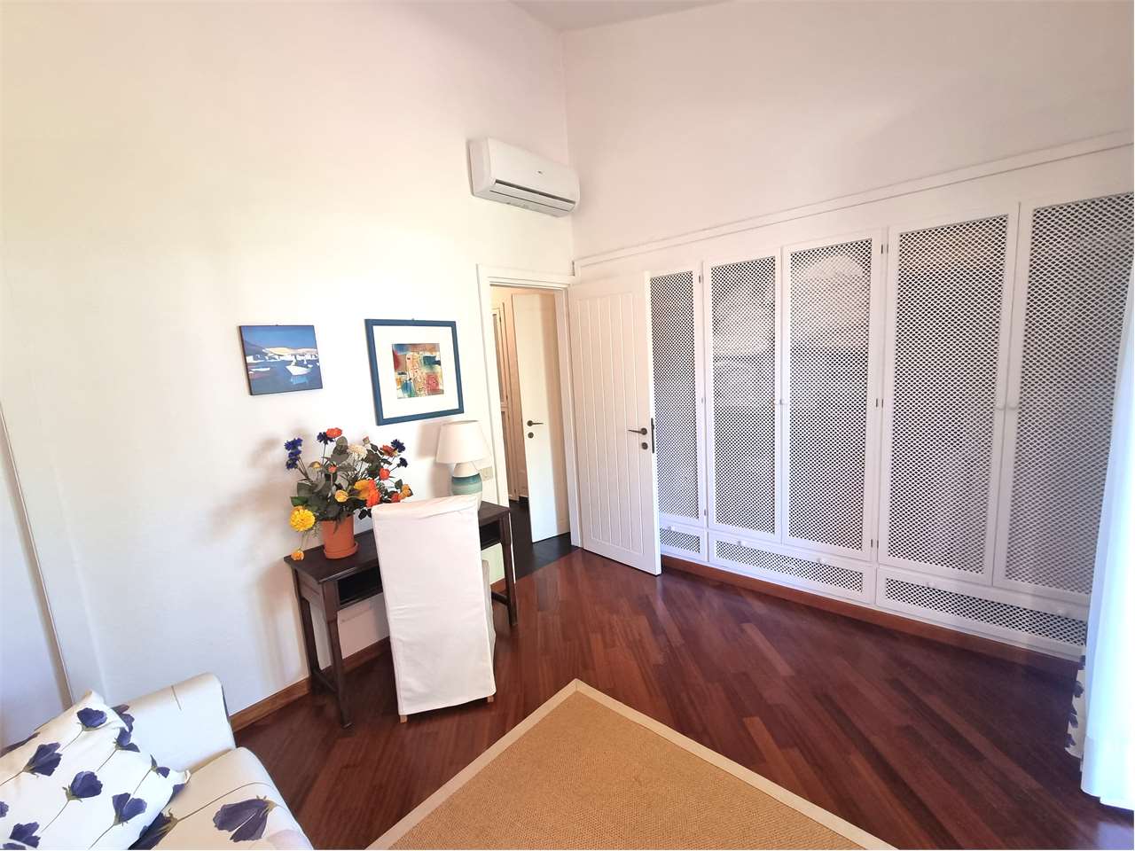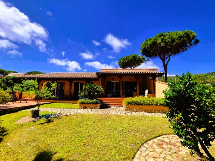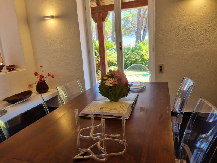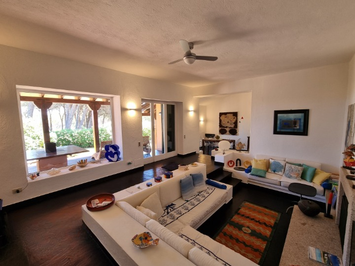Nel cuore del giardino si trova una splendida piscina privata, realizzata nel 2019, posizionata in modo da garantire privacy e relax. La villa, situata a soli 200 metri dal mare, si sviluppa interamente al piano terra e accoglie gli ospiti con ambienti eleganti e ben distribuiti: un ampio soggiorno arricchito da una particolare vasca lounge, una sala da pranzo luminosa, tre camere da letto, tre bagni e un angolo cottura progettato per collegarsi agevolmente sia con la zona living che con l’area barbecue esterna, ideale per pranzi e cene all’aperto.