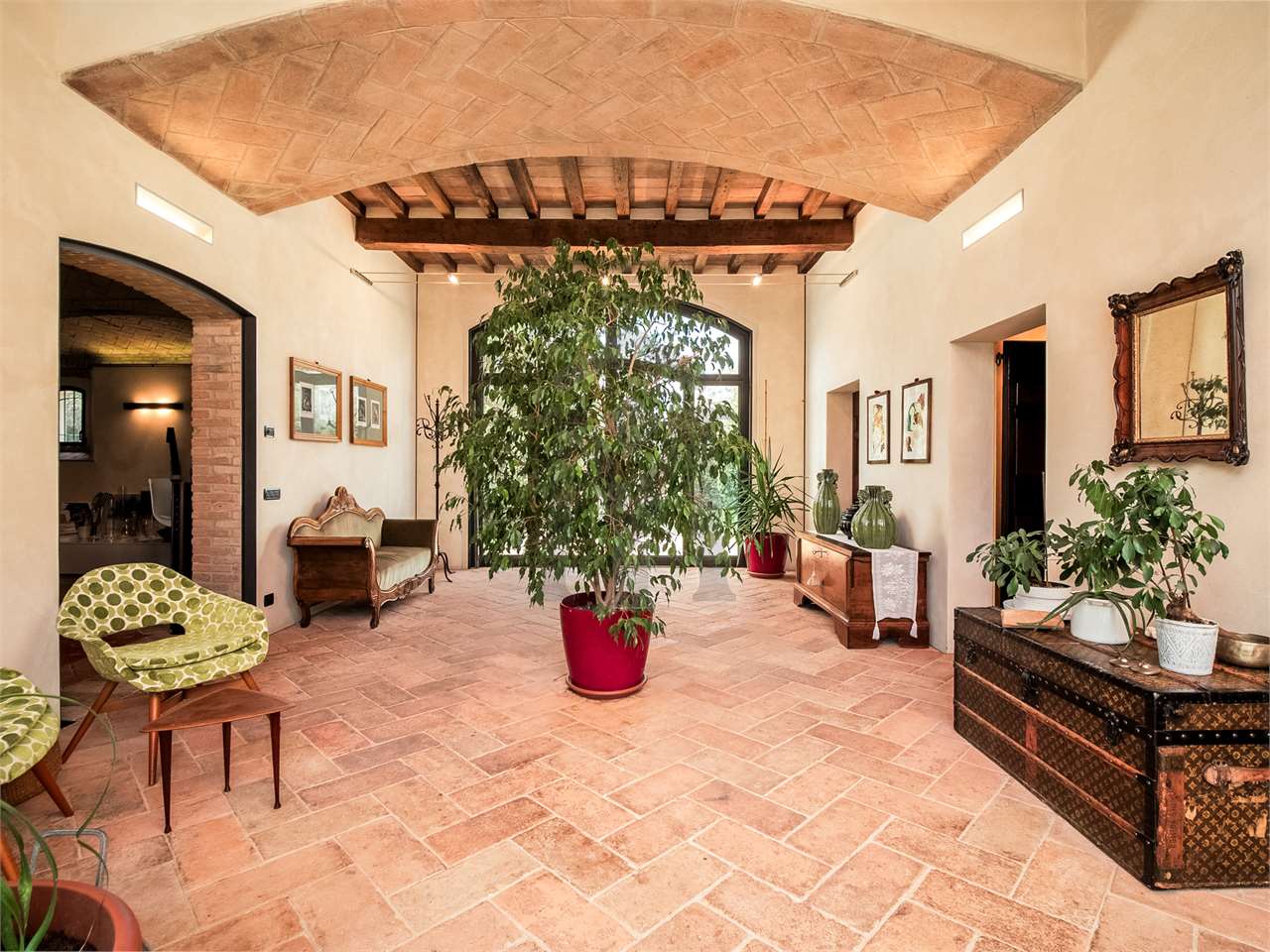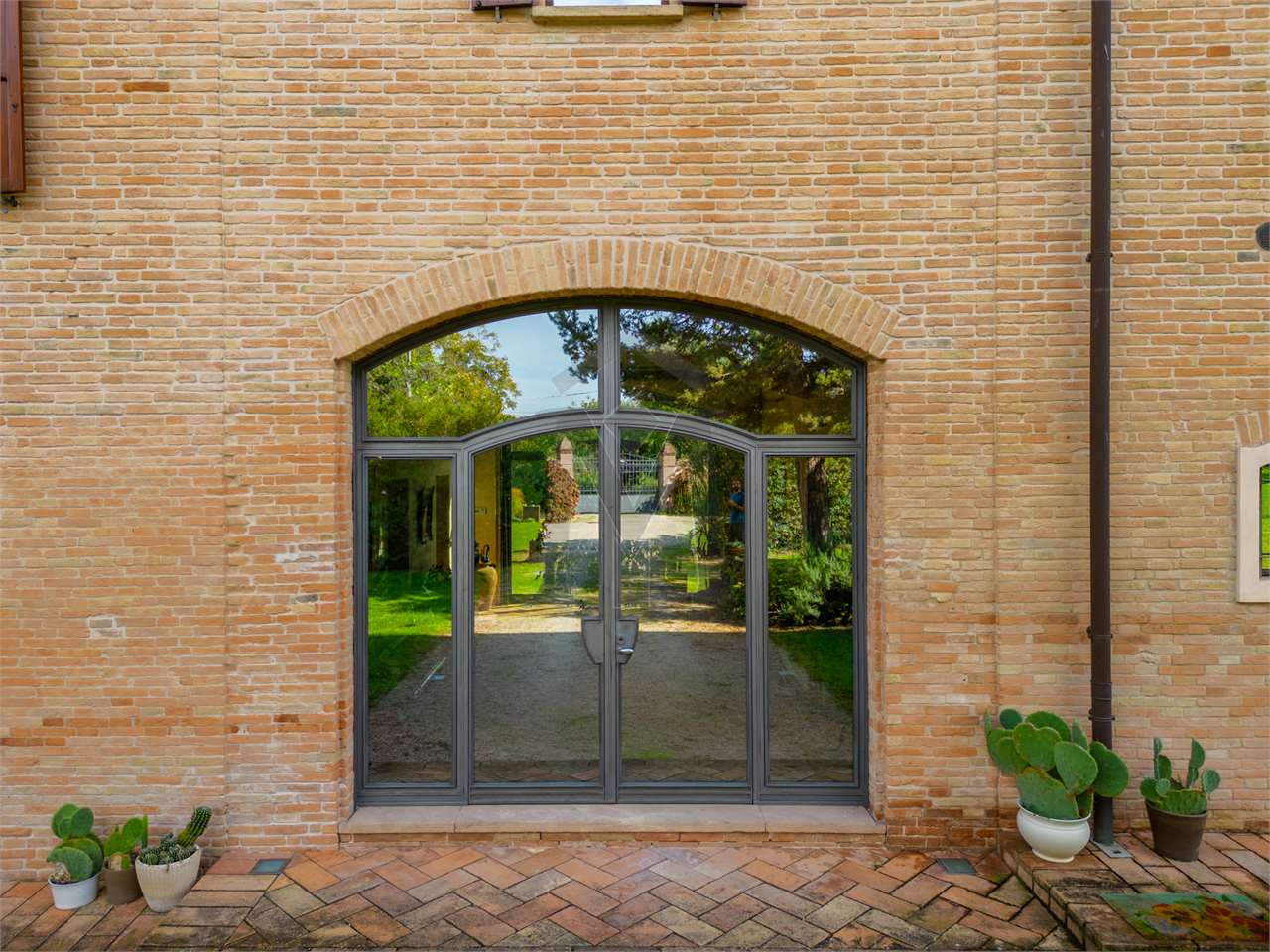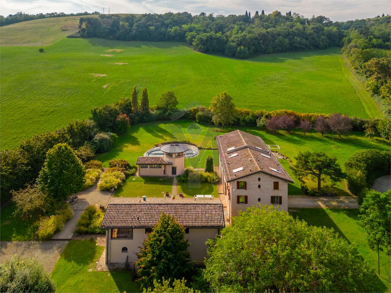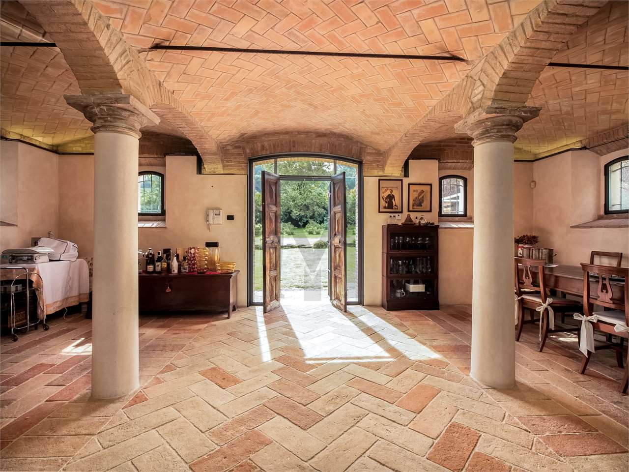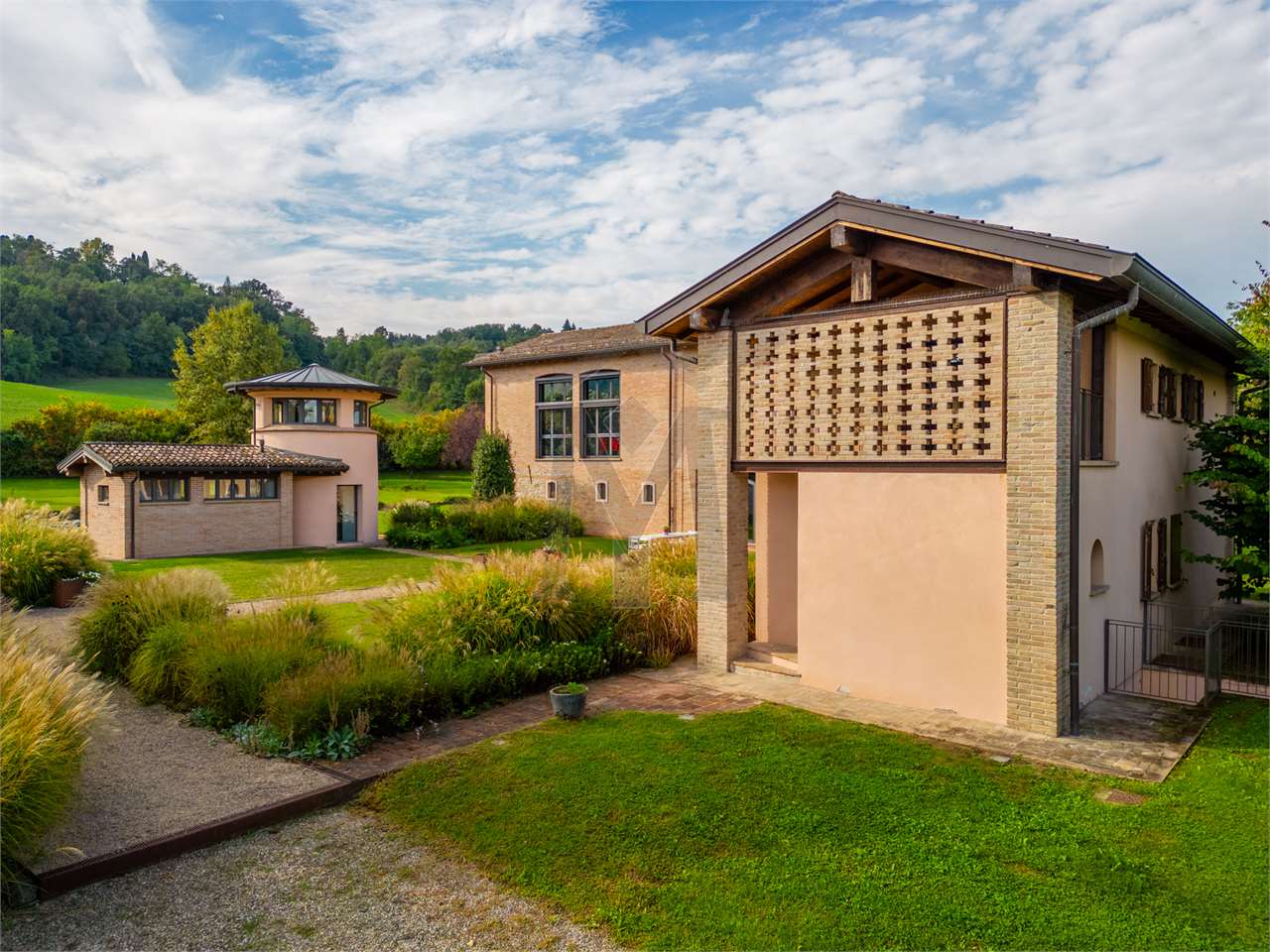 SI ACCETTANO PERMUTE – Sulle splendide colline Matildiche, circondata da natura ed antichi vigneti, troviamo questa meravigliosa tenuta comprendente uno splendido casale completamente ristrutturato, una dependance con due ulteriori appartamenti, il tutto circondato da un magnifico parco di 8000 mq con piscina. La villa padronale, un concentrato di finiture di altissima qualità abbinata ad un’impiantistica di ultima generazione comprende al piano terra un bilocale completamente indipendente, un ingresso ricavato nell’antica “porta morta” caratterizzato da un’infinita luminosità data dalle ampie vetrate, una pratica lavanderia, un bagno di servizio e la vecchia stalla con i volti originali in mattoni predisposta con un angolo cottura e collegata direttamente all’esterno. Al piano primo, al quale si accede tramite una scala di design in metallo e legno, troviamo un soggiorno di circa 50 mq caratterizzato da un doppio volume e da vetrate a tutta altezza che mettono in risalto la splendida vista sulla collina, una cucina abitabile attrezzata, una suite con bagno interno e due cabine armadio, un ulteriore camera, un bagno con vasca e doccia ed un ripostiglio. Infine, al piano secondo troviamo una splendida zona relax, due ripostigli ed infine due ambienti ideali per ricavare un ulteriore suite con cabina armadio e bagno privato. La dependance risulta invece composta da due appartamenti completamente indipendenti entrambi formati da soggiorno con angolo cottura a vista, una camera ed un bagno, mentre al piano interrato troviamo la zona dedicata alle cantine ed alla centrale termica. Completa la proprietà uno splendido fabbricato ricavato nel vecchio silos dove troviamo al piano terra il locale docce/spogliatoi dedicati alla zona piscina e al piano primo un ambiente caratterizzato da una finestratura a 360° ideale per ricavare uno studio od un atelier. Il parco privato piantumato con molteplici essenze e profumi risulta inoltre dotato di diverse tipologie di allarmi comprensivi di telecamere.