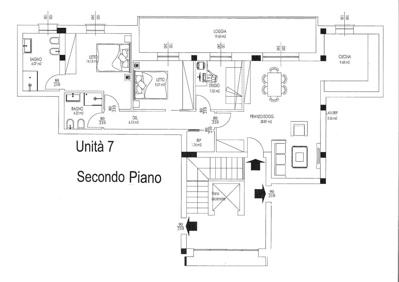 UNITA’ 7 – A Montecchio Emilia, in zona residenziale di recente edificazione a poca distanza dal centro, proponiamo attico di 110 mq con ampio terrazzo, all’interno di un intervento immobiliare di prossima realizzazione composto da otto unità immobiliari in classe A. L’immobile è composto da ingresso su zona living con accesso al terrazzo di 20 mq, cucina abitabile, ripostiglio, disimpegno zona notte con studio, bagno e due camere matrimoniali di cui una con bagno en suite. Completano la proprietà la cantina e il garage.