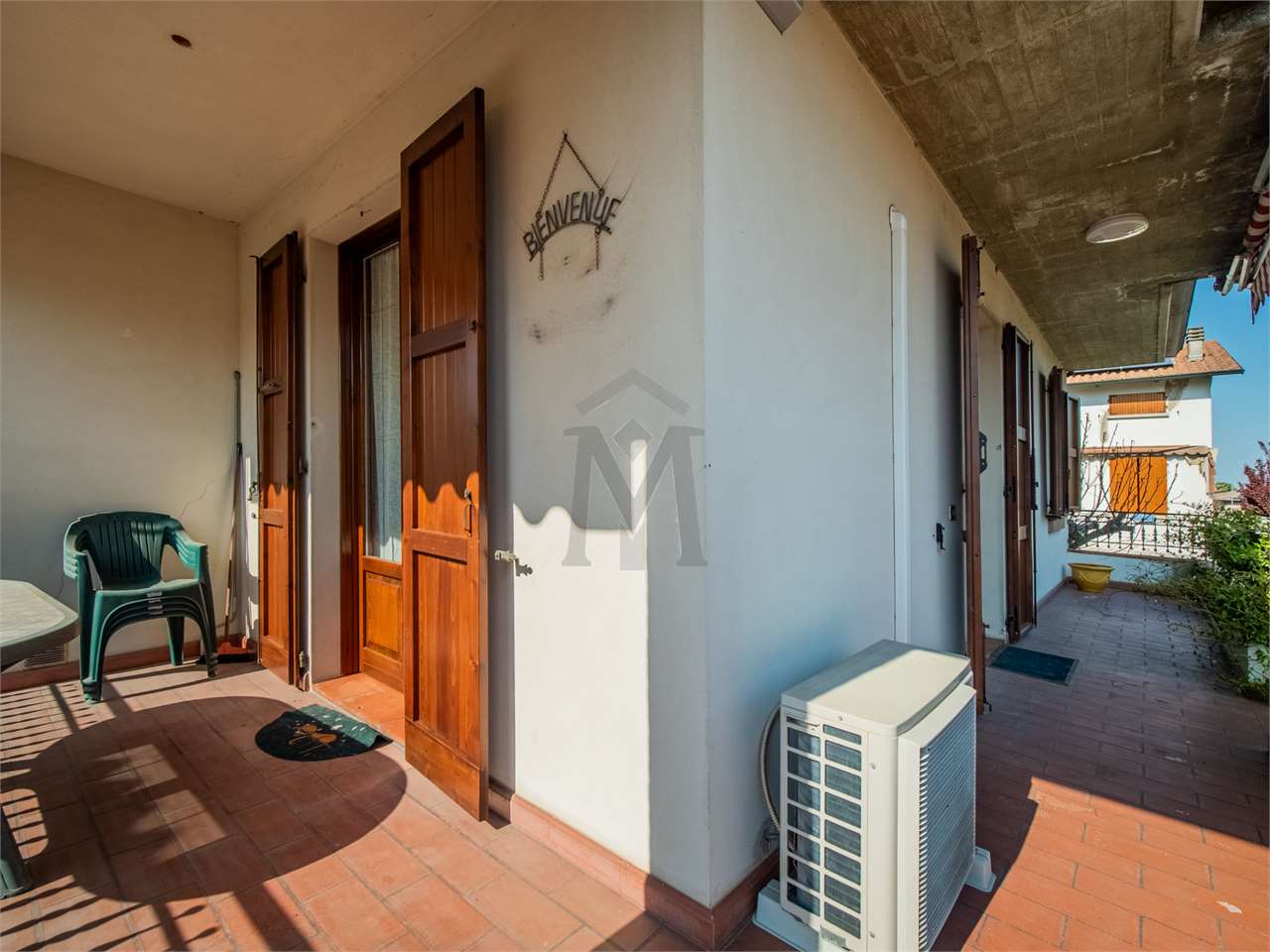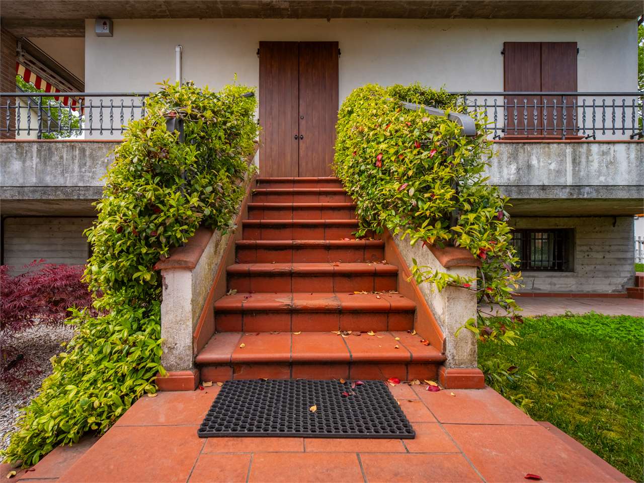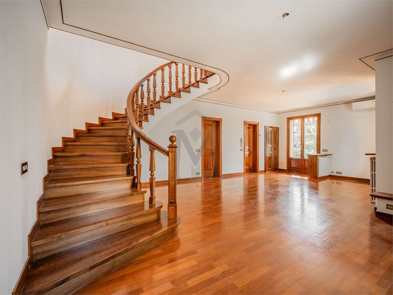 In zona residenziale comoda ai servizi ed in strada chiusa, proponiamo elegante villa abbinata di fine anni ’80 di circa 221 mq. dalle ottime metrature così composta: ingresso al piano rialzato con bellissimo loggiato che collega tutta la zona giorno, disimpegno con camera matrimoniale, balcone e bagno; stanza pluriuso con scala a chiocciola che si collega al piano interrato. Al primo piano, il tutto collegato da maestosa scala in legno, zona open-space pluriuso con balcone, cucinotto, disimpegno notte con camera matrimoniale, balcone e bagno. Al piano interrato, lavanderia, locale caldaia, cantina, due ripostigli ed ampio garage di 32 mq con ingresso da cancello automatico comune con il vicino. Completa la proprietà giardino privato con irrigazione automatica di 166 mq. Proprietà spaziosa, versatile; completa di aria condizionata con pompa di calore, allarme, tende da sole, camino.