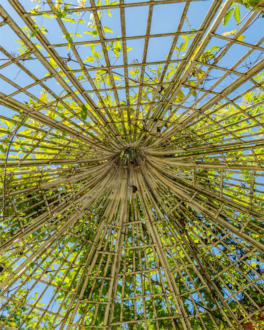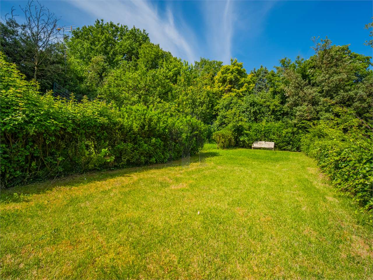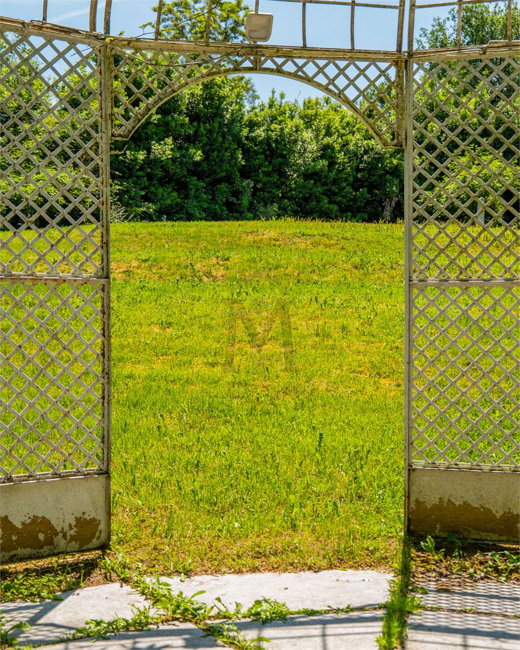 Il grande prato libero esalta il gazebo in ferro, luogo di sosta riparo.