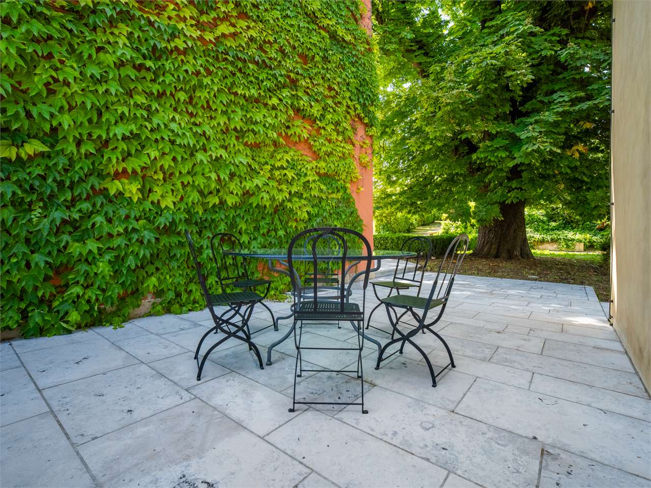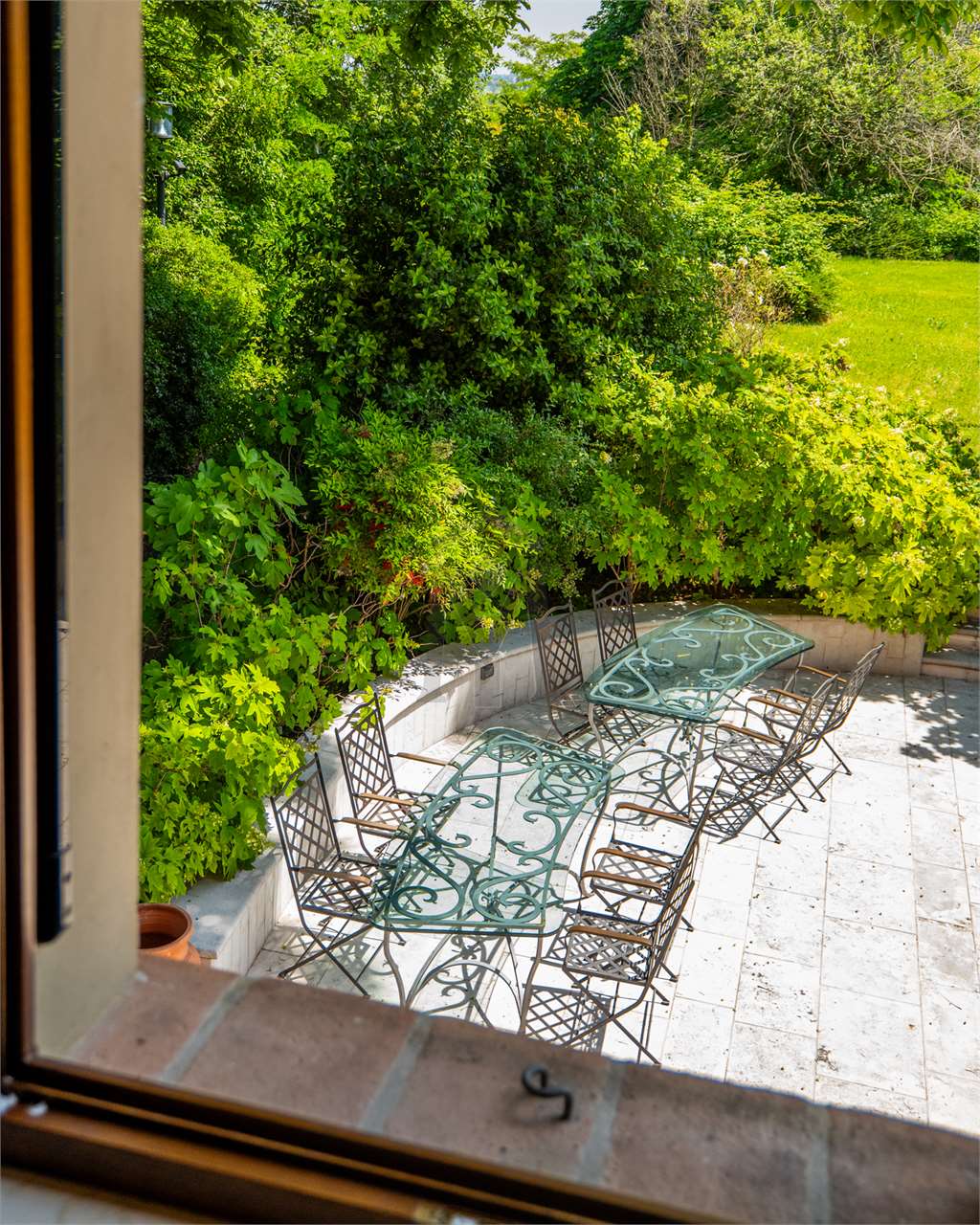 Seguono due grandi prati incorniciati da arbusti dal “sapore” romantico, in particolar modo, il prato più esterno crea una sorta di “belvedere” aperto sulla splendida vista rivolta verso la pianura.
