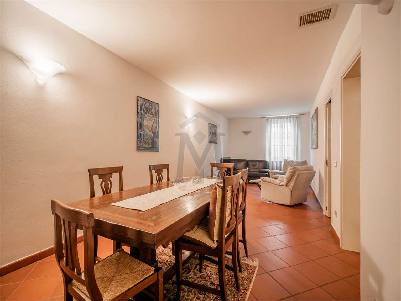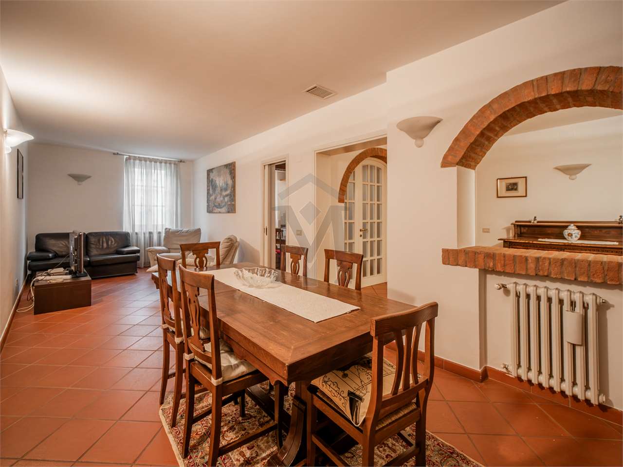 L’ingresso è spazioso e ben organizzato, con la presenza di un ripostiglio molto pratico. La zona giorno è composta da un soggiorno ampio e luminoso e da una cucina abitabile separata.
