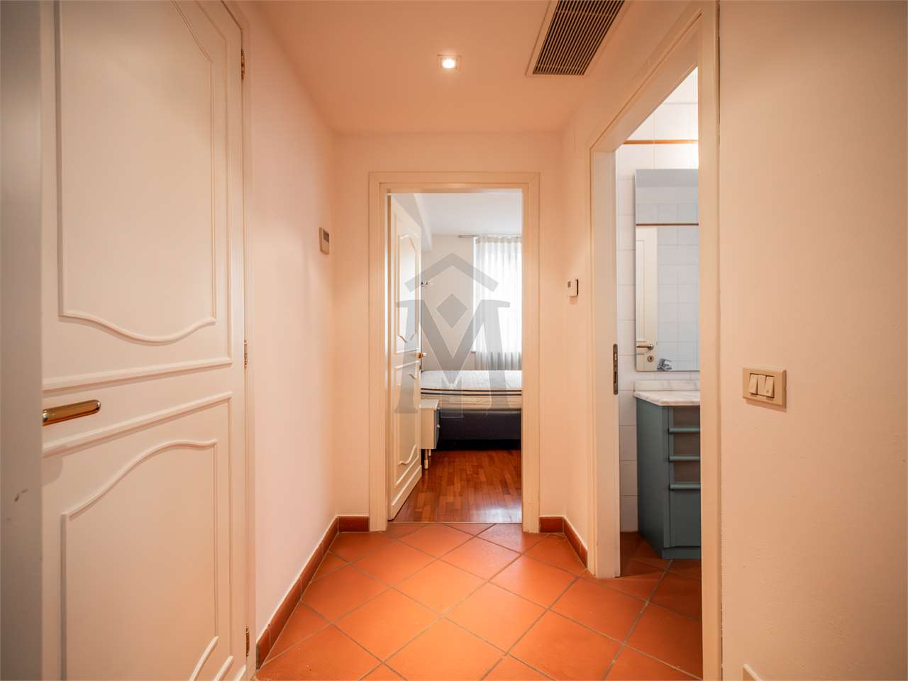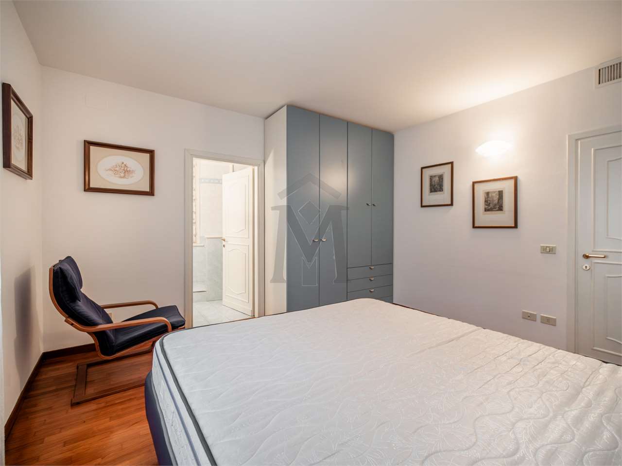 La zona notte è servita da un disimpegno che conduce a due camere matrimoniali, di cui una con bagno privato, oltre a un bagno di servizio dotato di angolo lavanderia.