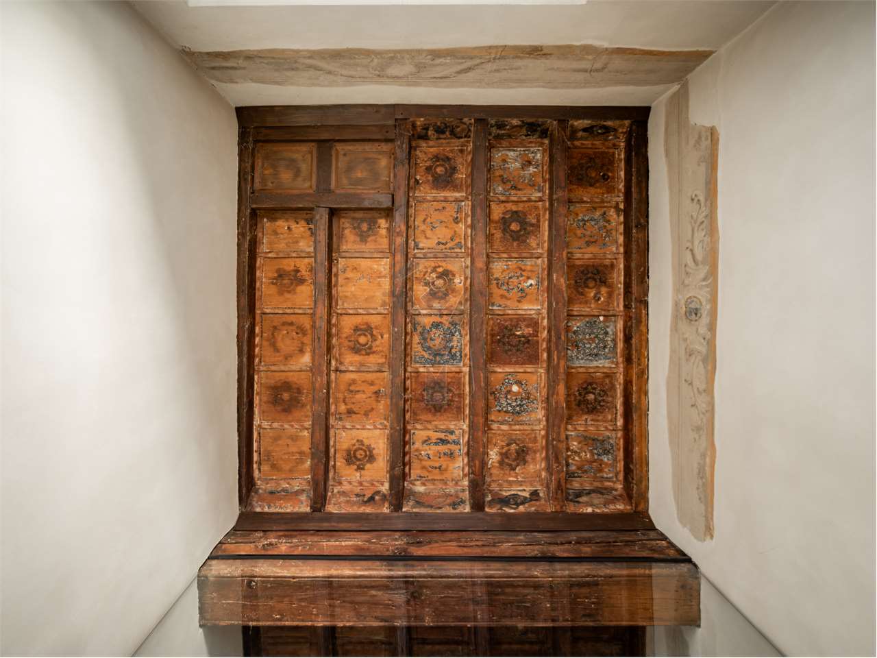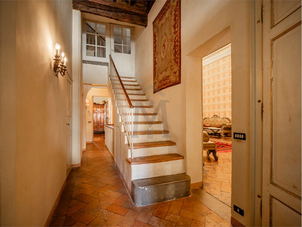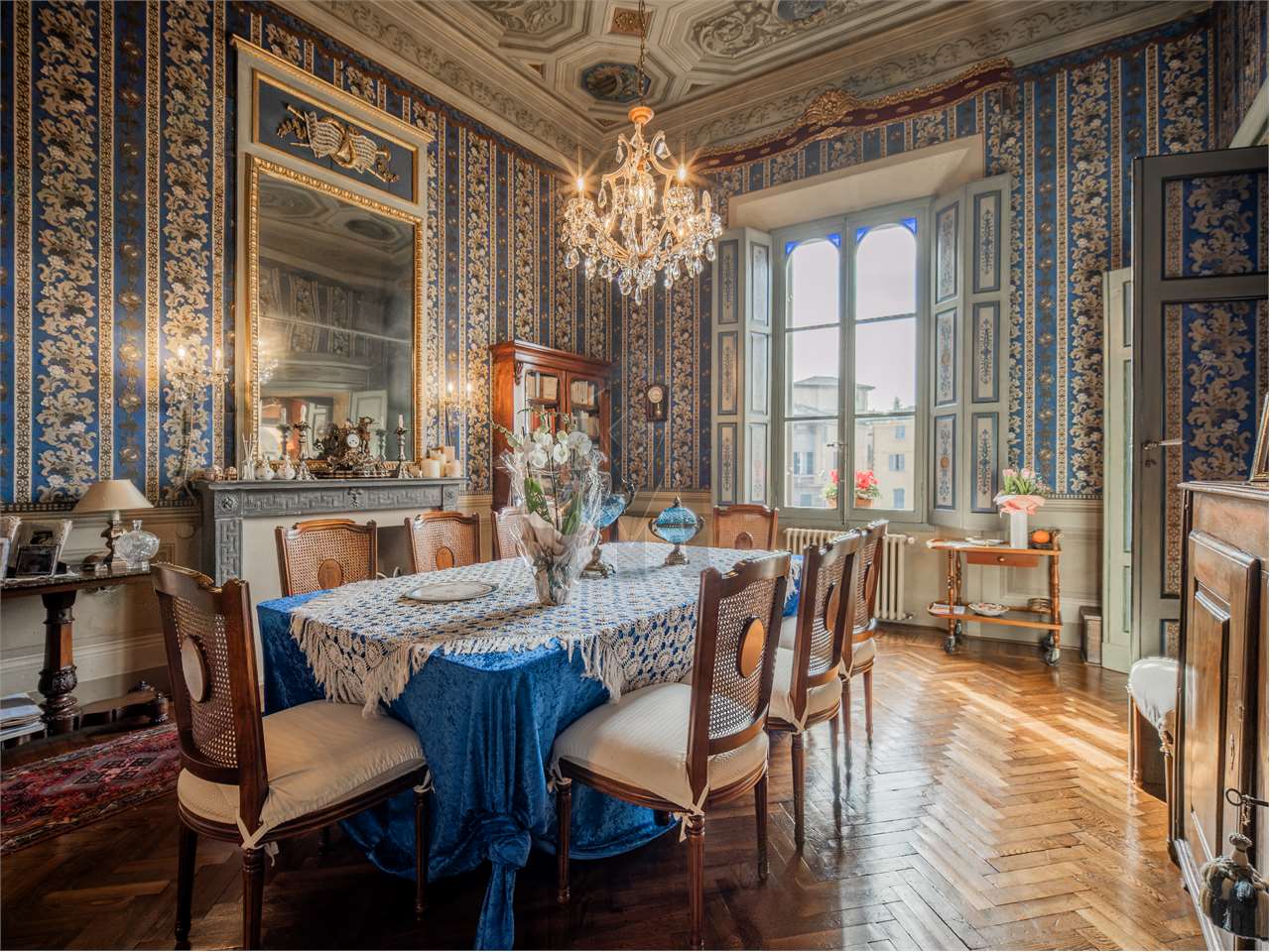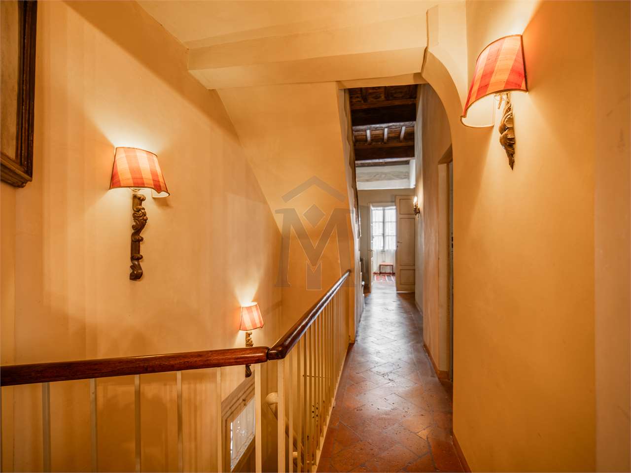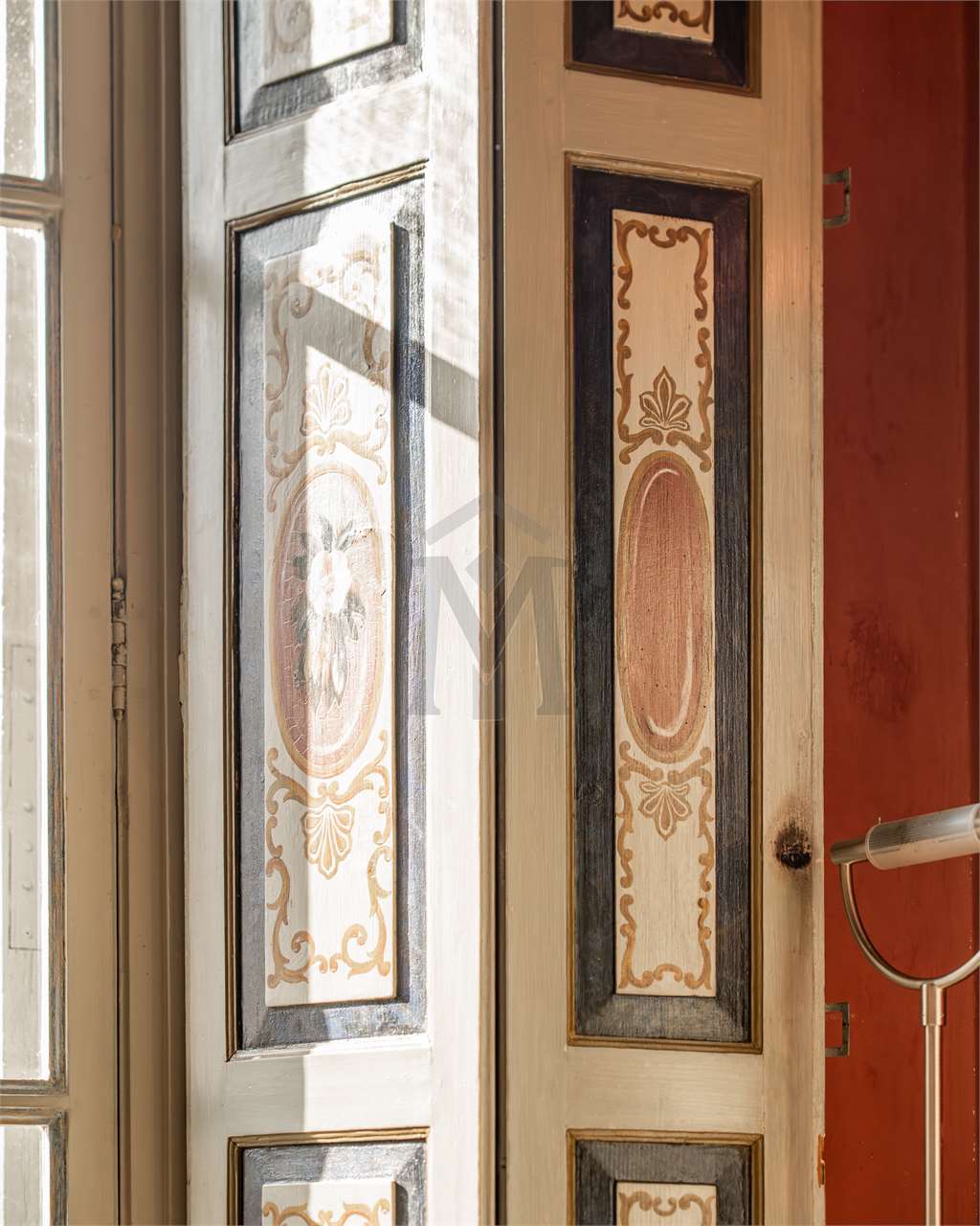 Dal disimpegno una scala interna collega gli ambienti accessori: al piano terzo si trovano lavanderia e locali di servizio; al piano terra un ulteriore ripostiglio con accesso secondario all’androne. Completano la proprietà ampie cantine con volti a botte al piano seminterrato . Gli ambienti abitativi, di notevole dimensione e altezza, nell’anno 2004 sono stati oggetto di un accurato restauro conservativo che ha valorizzato gli elementi decorativi originari: alti soffitti decorati e a cassettoni in legno, pareti finemente dipinte o rivestite con carte decorate a mano, porte d’epoca laccate, pavimenti storici in rovere e larice e prezioso cotto cinquecentesco recuperato. L’impiantistica è stata completamente rinnovata con riscaldamento autonomo a radiatori in ghisa e caldaia a condensazione, impianto elettrico moderno ed efficiente, nuovi servizi igienici e climatizzazione a zone.