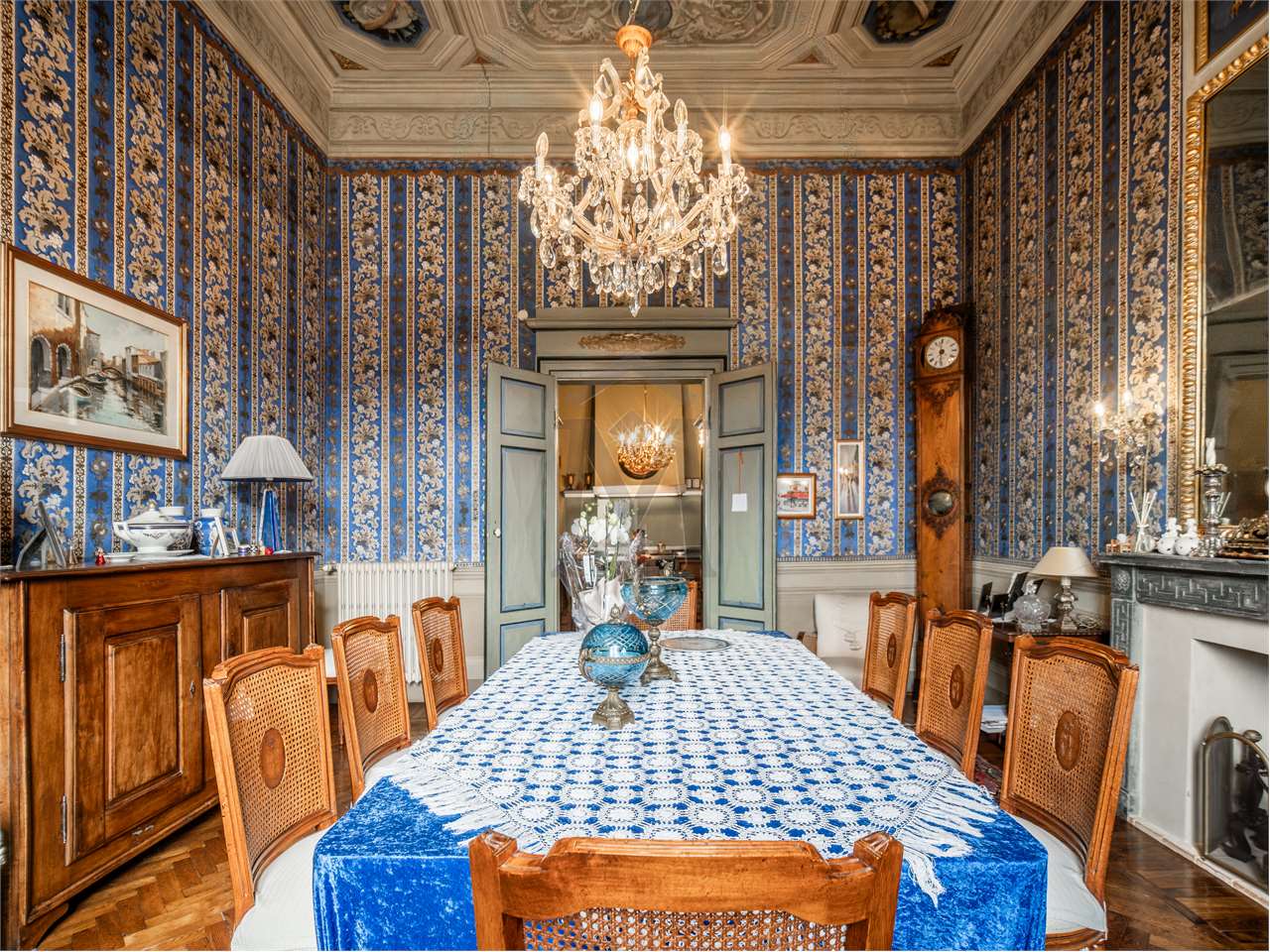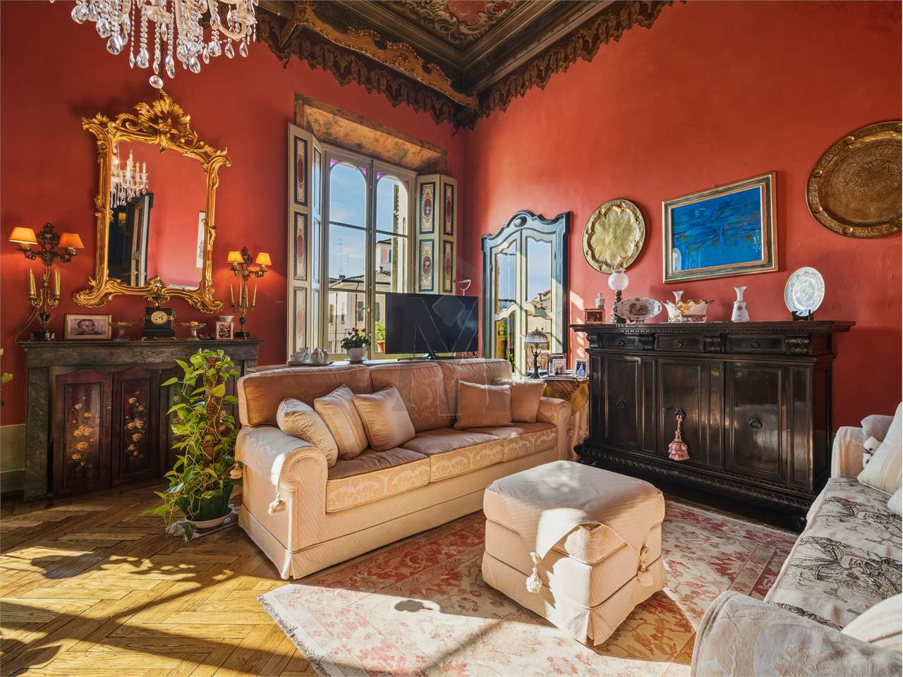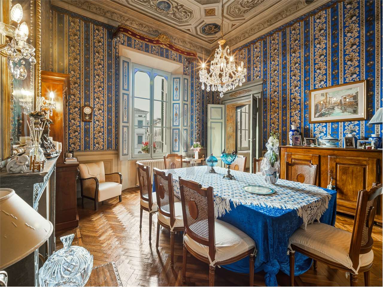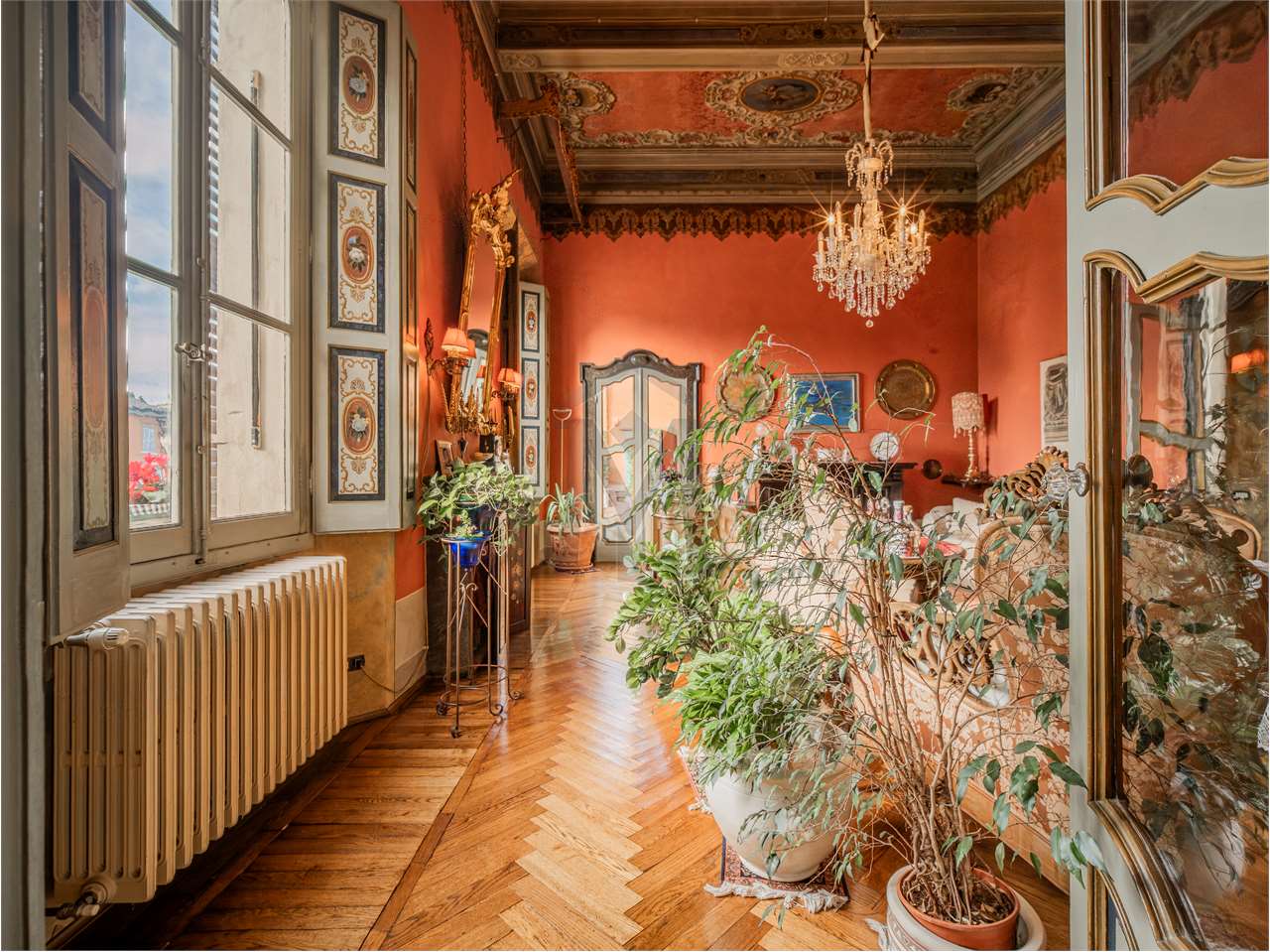 Dal disimpegno una scala interna collega gli ambienti accessori: al piano terzo si trovano lavanderia e locali di servizio; al piano terra un ulteriore ripostiglio con accesso secondario all’androne. Completano la proprietà ampie cantine con volti a botte al piano seminterrato . Gli ambienti abitativi, di notevole dimensione e altezza, nell’anno 2004 sono stati oggetto di un accurato restauro conservativo che ha valorizzato gli elementi decorativi originari: alti soffitti decorati e a cassettoni in legno, pareti finemente dipinte o rivestite con carte decorate a mano, porte d’epoca laccate, pavimenti storici in rovere e larice e prezioso cotto cinquecentesco recuperato. L’impiantistica è stata completamente rinnovata con riscaldamento autonomo a radiatori in ghisa e caldaia a condensazione, impianto elettrico moderno ed efficiente, nuovi servizi igienici e climatizzazione a zone.