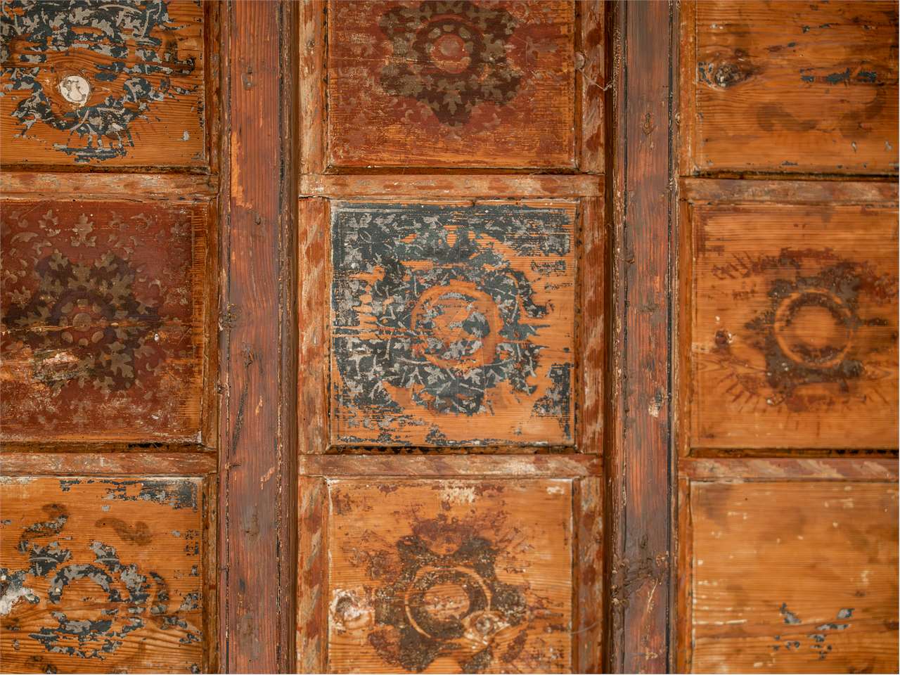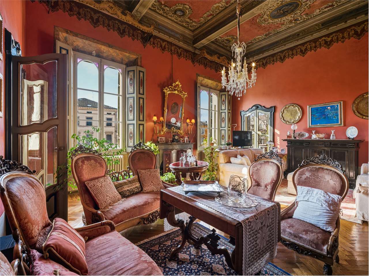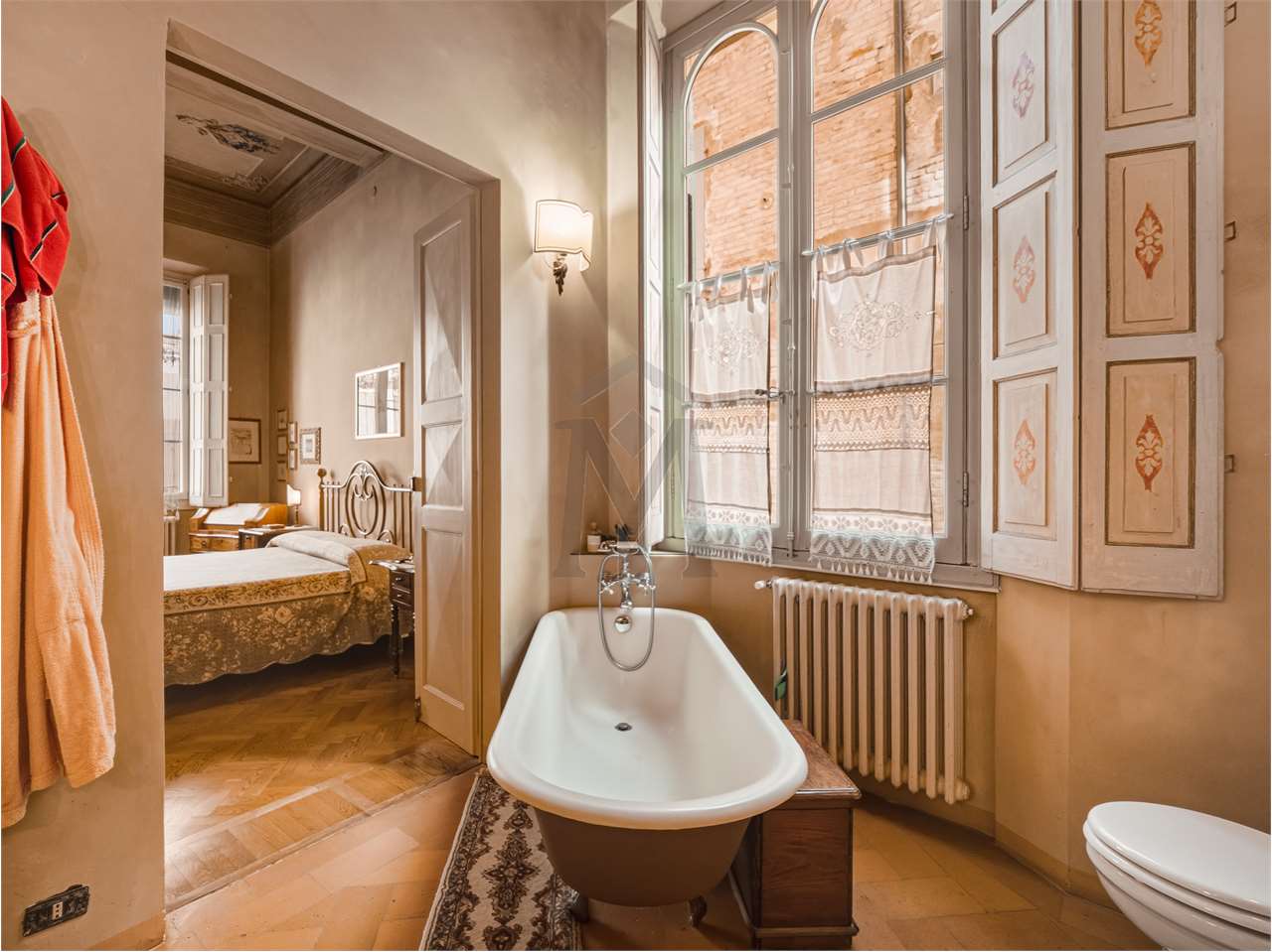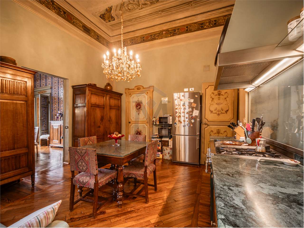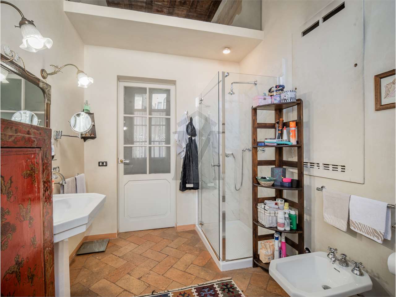 Dal disimpegno una scala interna collega gli ambienti accessori: al piano terzo si trovano lavanderia e locali di servizio; al piano terra un ulteriore ripostiglio con accesso secondario all’androne. Completano la proprietà ampie cantine con volti a botte al piano seminterrato . Gli ambienti abitativi, di notevole dimensione e altezza, nell’anno 2004 sono stati oggetto di un accurato restauro conservativo che ha valorizzato gli elementi decorativi originari: alti soffitti decorati e a cassettoni in legno, pareti finemente dipinte o rivestite con carte decorate a mano, porte d’epoca laccate, pavimenti storici in rovere e larice e prezioso cotto cinquecentesco recuperato. L’impiantistica è stata completamente rinnovata con riscaldamento autonomo a radiatori in ghisa e caldaia a condensazione, impianto elettrico moderno ed efficiente, nuovi servizi igienici e climatizzazione a zone.