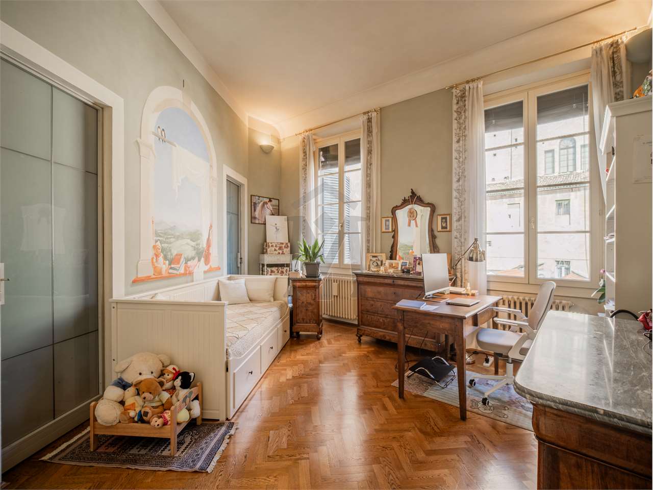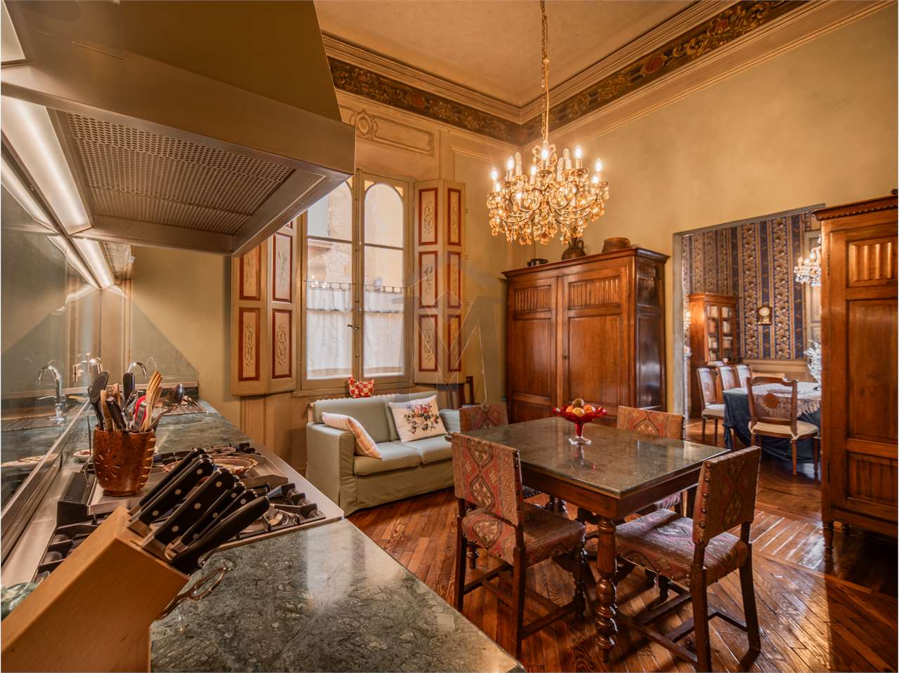 Nel cuore del centro storico di Reggio Emilia, all’interno dello storico Palazzo Rangone, proponiamo una dimora di assoluto pregio, situata al piano nobile dell’edificio. Questo palazzo affonda le proprie radici nella storia più illustre del territorio e richiama l’eredità della casata dei Canossa, signori di queste terre e protagonisti di una stagione che ha reso Reggio uno dei centri più influenti dell’Italia medievale. Un legame che ancora oggi si percepisce nell’autorevolezza dell’architettura e nel carattere senza tempo della residenza. Qui la luce accarezza soffitti d’epoca, gli spazi respirano eleganza e il lusso non cerca attenzione: la impone. L’appartamento occupa l’ala est del palazzo ed è accessibile dal signorile vano scala comune. L’ingresso, attualmente suddiviso in due ambienti, conduce a un importante salone affiancato da due ulteriori sale di rappresentanza, cucina, disimpegno, tre camere da letto, due bagni e balcone con affaccio sulla Piazza del Cristo.