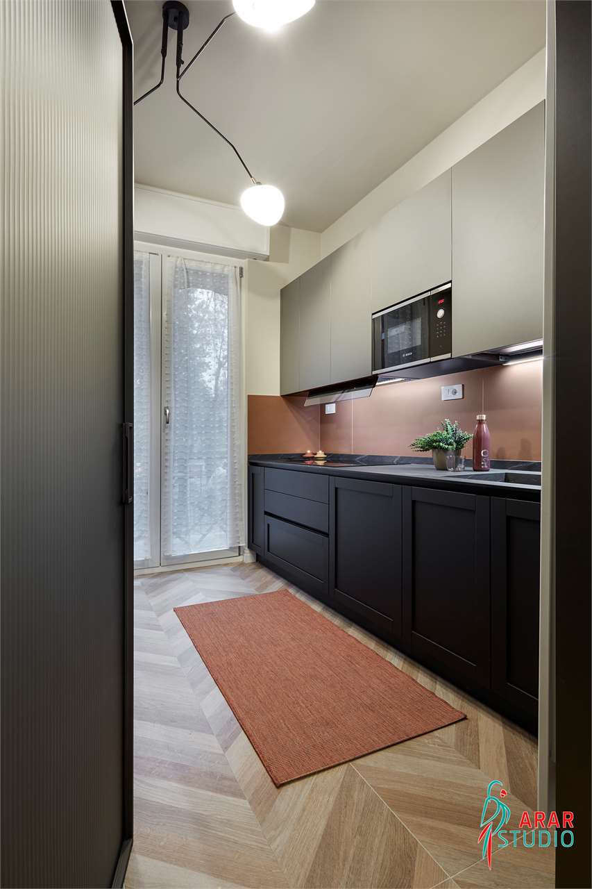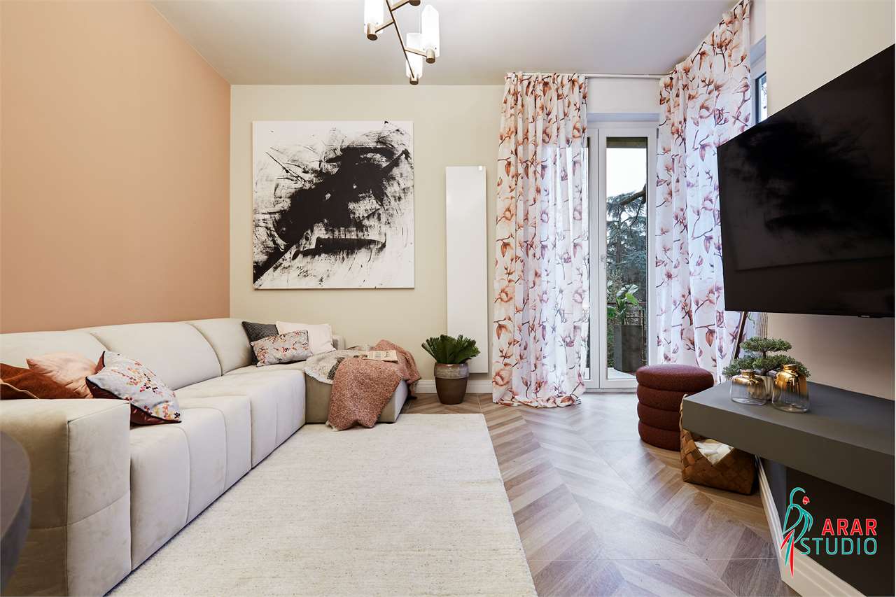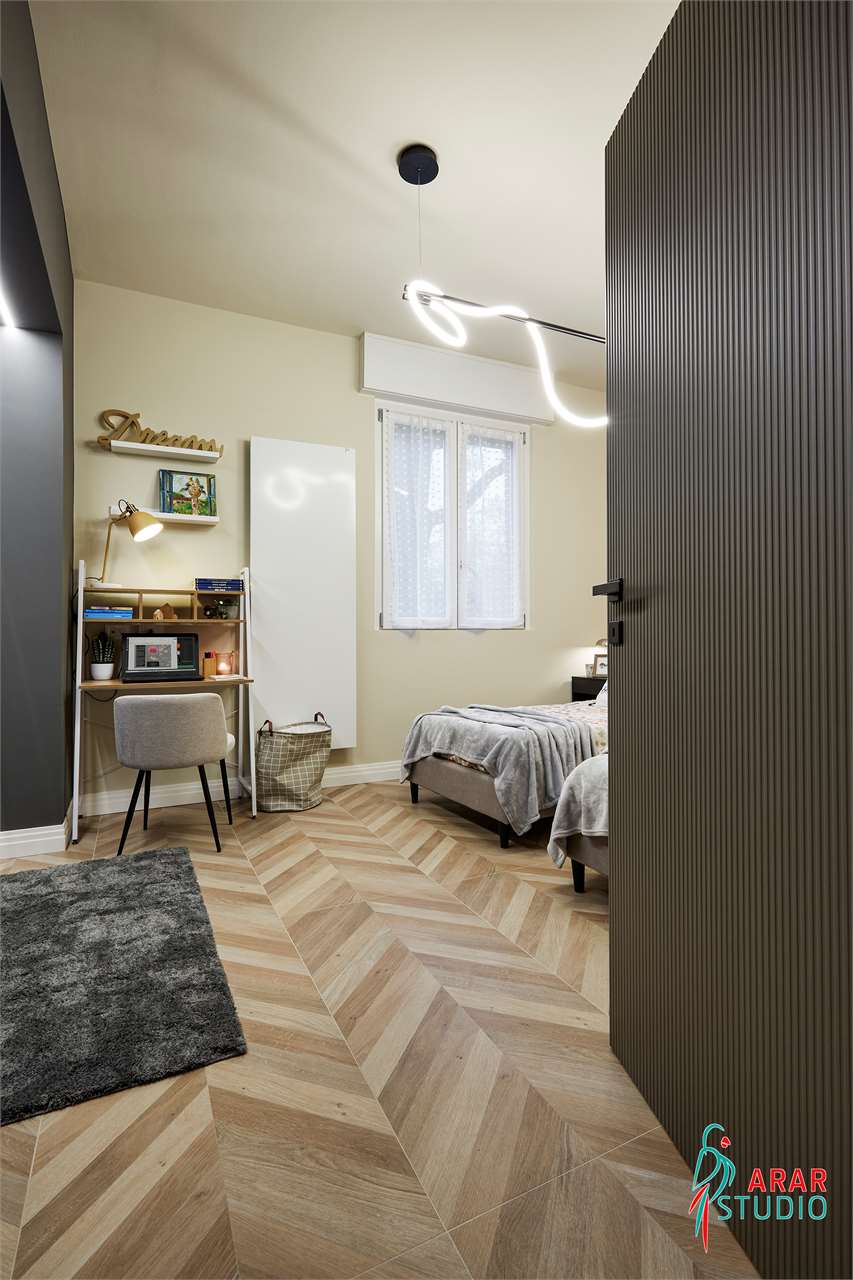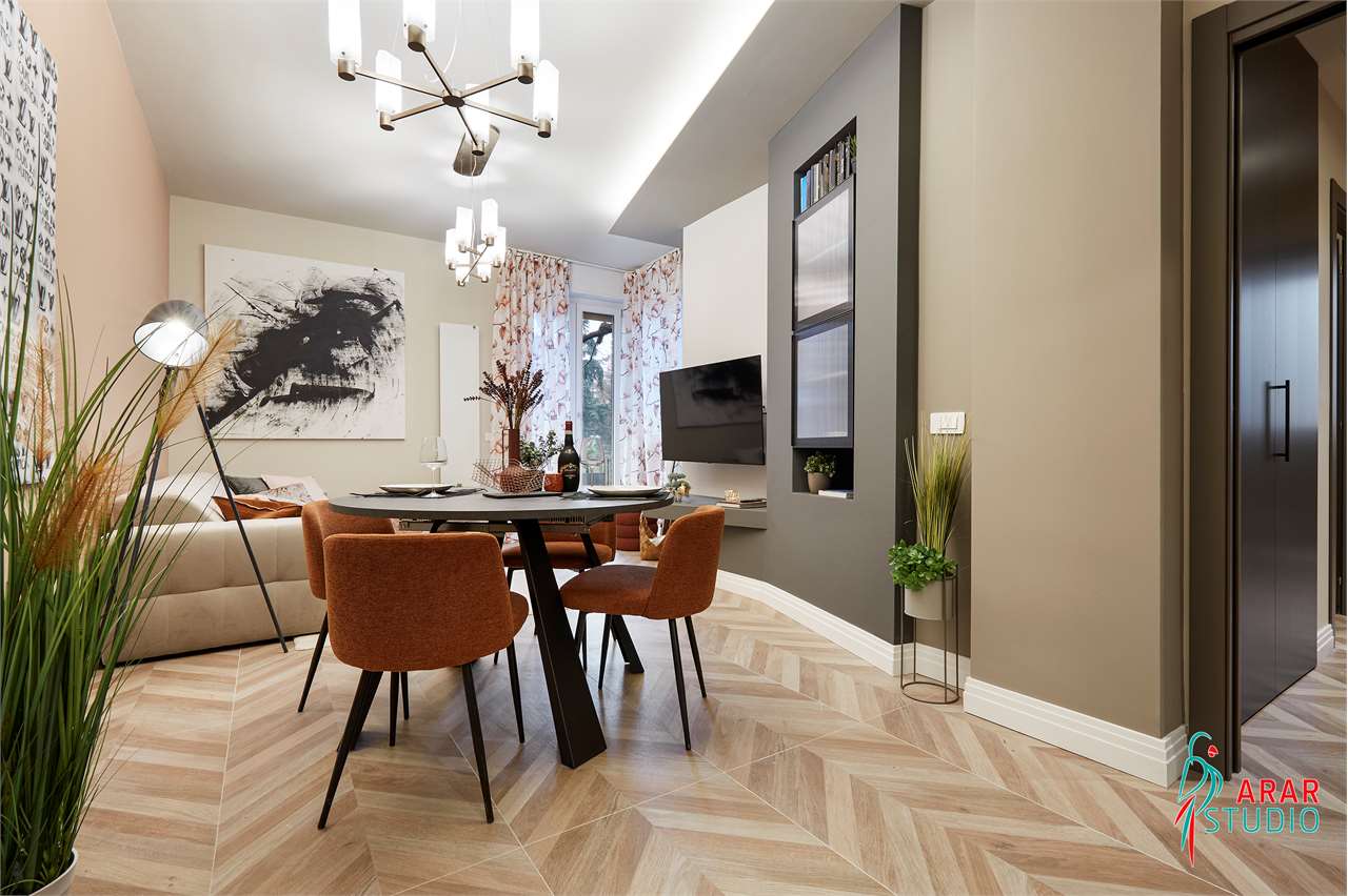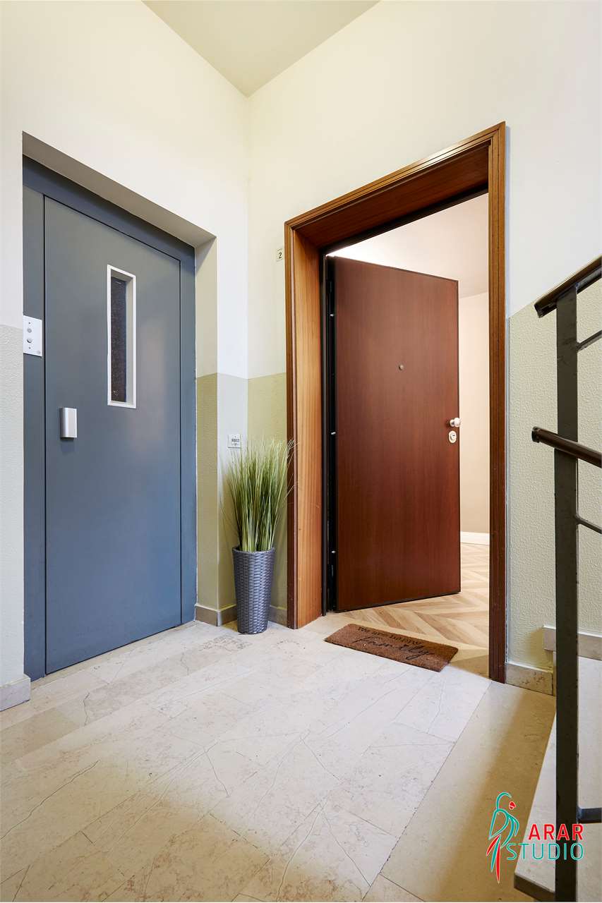 L’appartamento è composto da una luminosa e ampia sala, una cucina separata completamente arredata, due camere da letto spaziose e due bagni moderni, uno con doccia e l’altro con vasca. Completano la proprietà un balcone, una cantina e un comodo garage di proprietà, perfetti per soddisfare le esigenze di spazio.