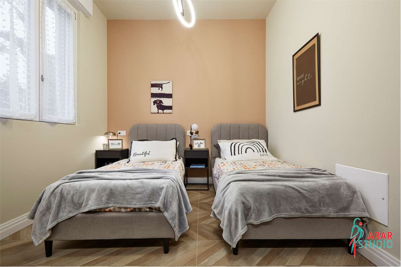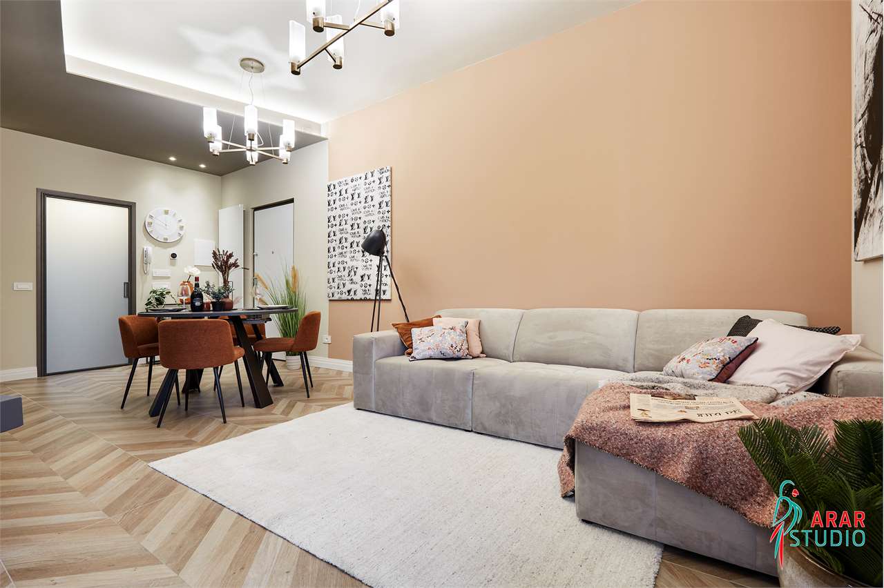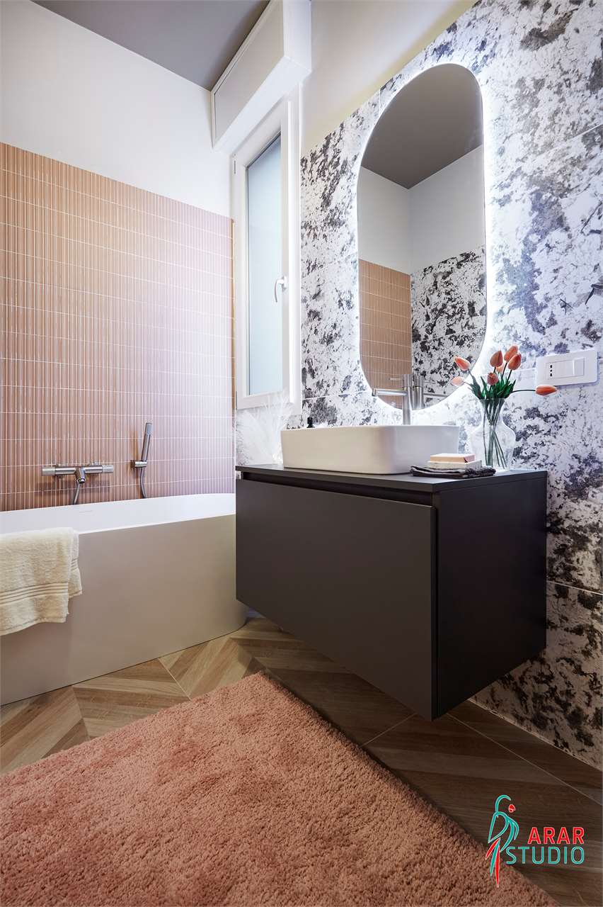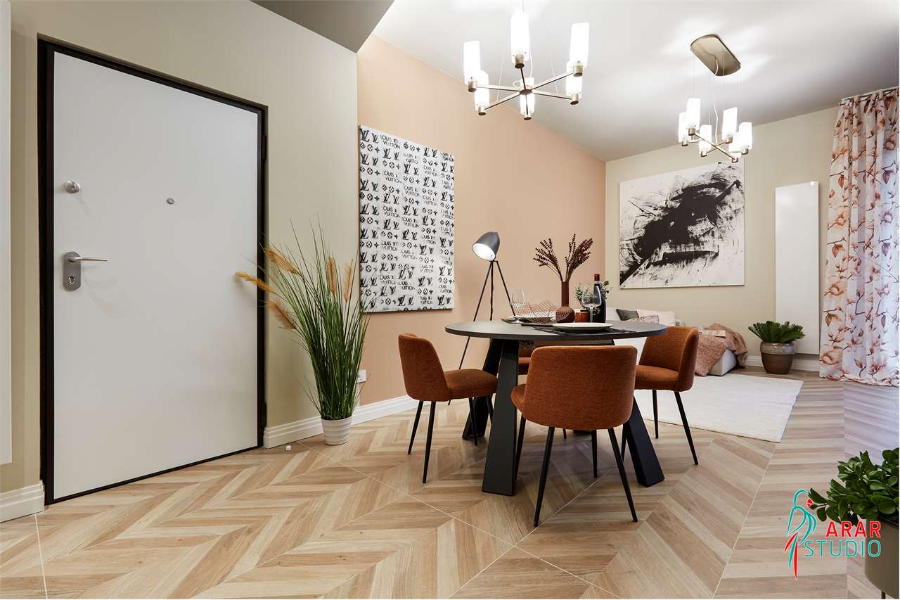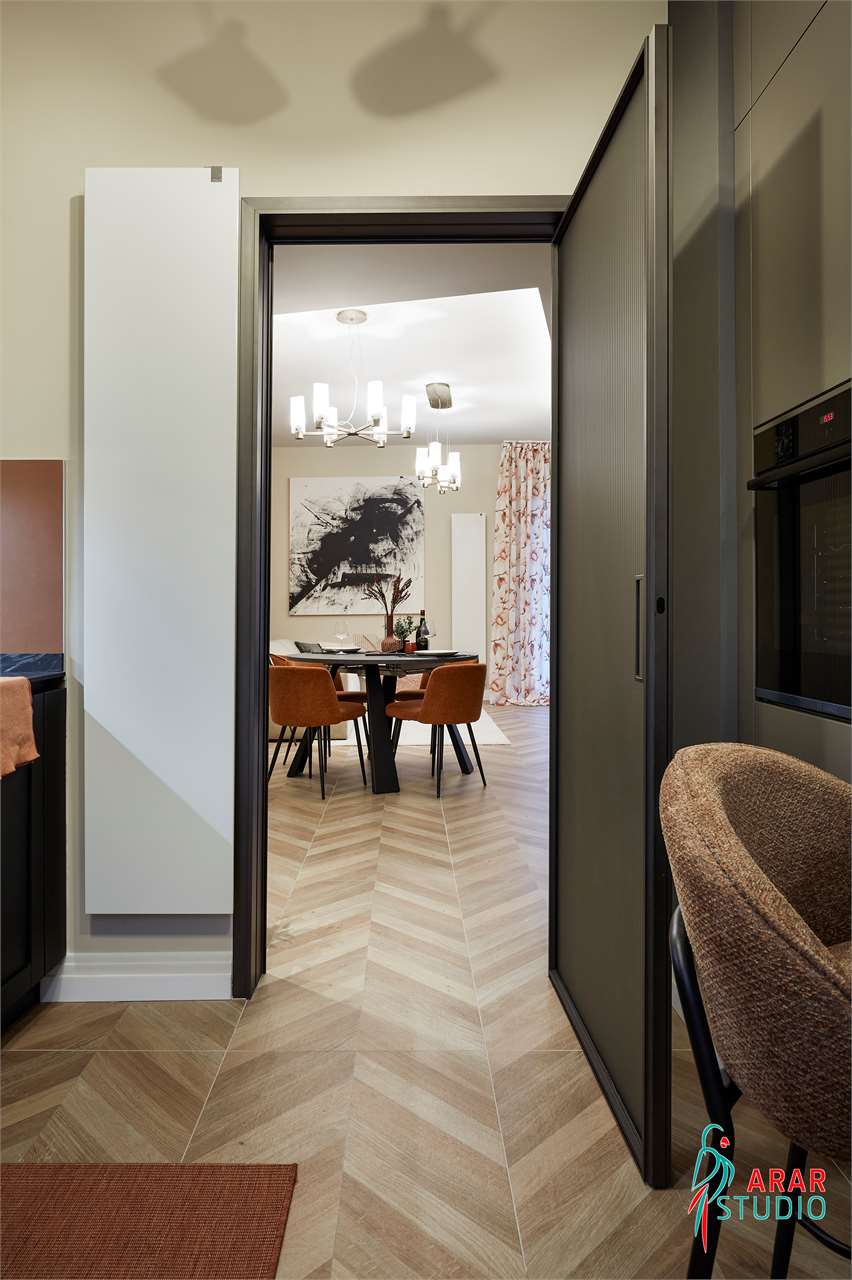 L’appartamento è composto da una luminosa e ampia sala, una cucina separata completamente arredata, due camere da letto spaziose e due bagni moderni, uno con doccia e l’altro con vasca. Completano la proprietà un balcone, una cantina e un comodo garage di proprietà, perfetti per soddisfare le esigenze di spazio.