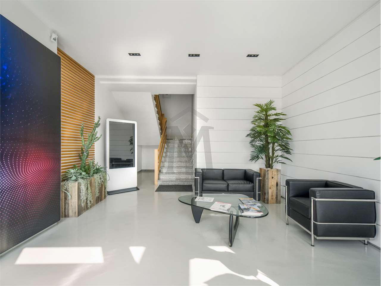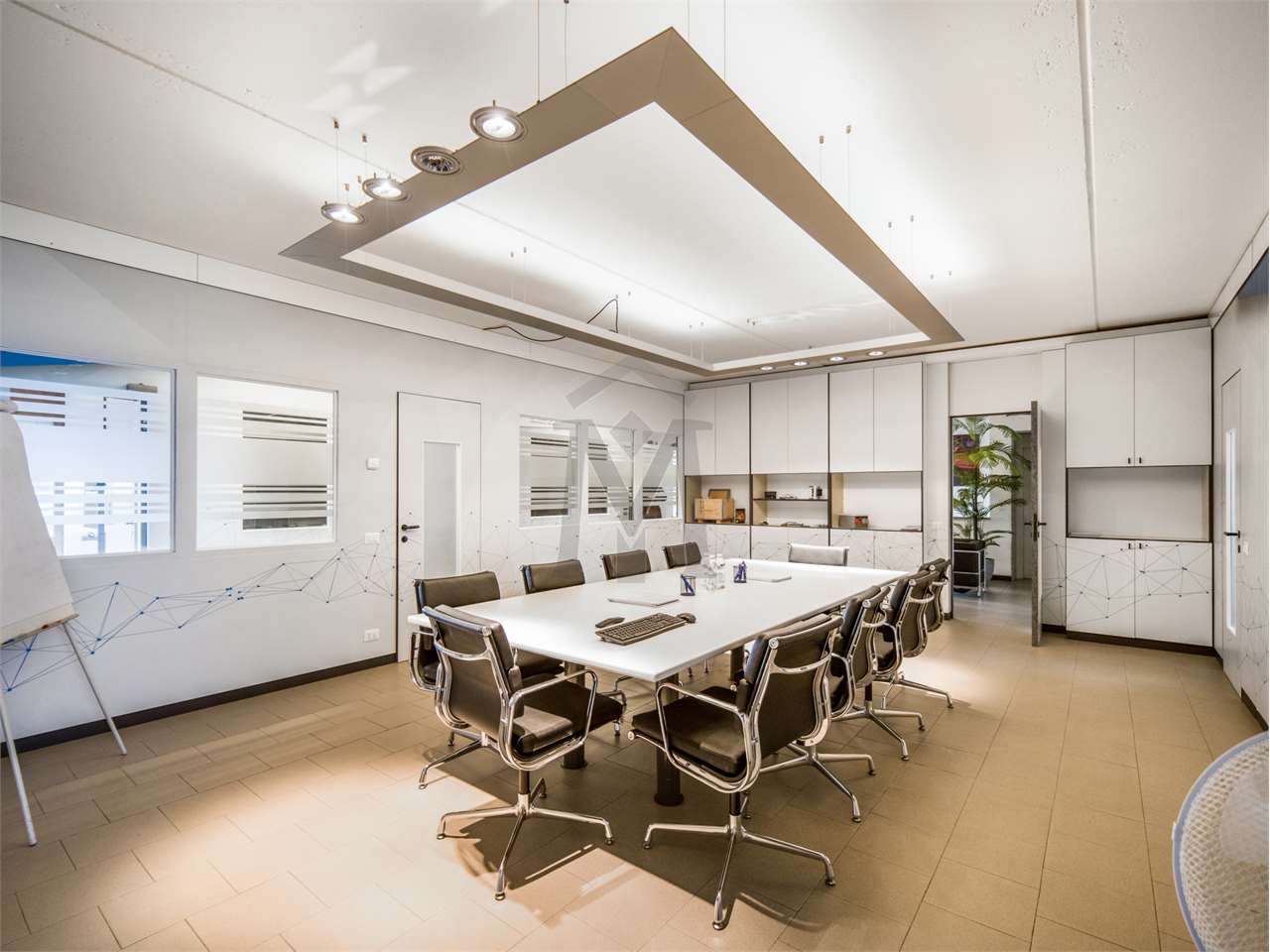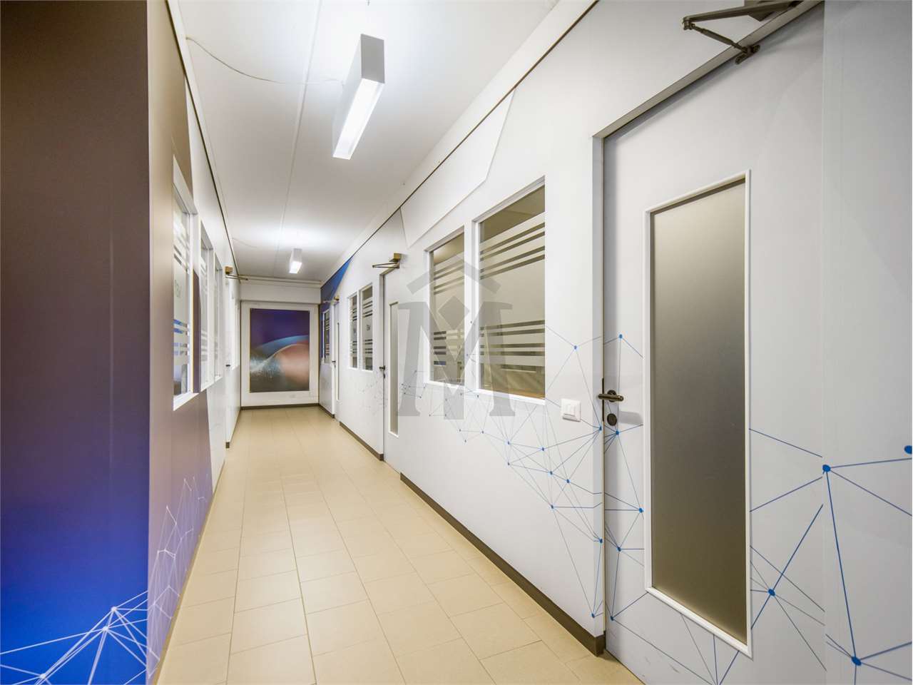 Al piano terra si trova un grande magazzino con ampio portone d’accesso e con un altezza di metri 5, completo di bagno. Il piano superiore, facilmente raggiungibile sia tramite scala interna che con ascensore, è dedicato alla parte direzionale e si compone di cinque uffici, un comodo corridoio di collegamento, una sala riunioni e due bagni.