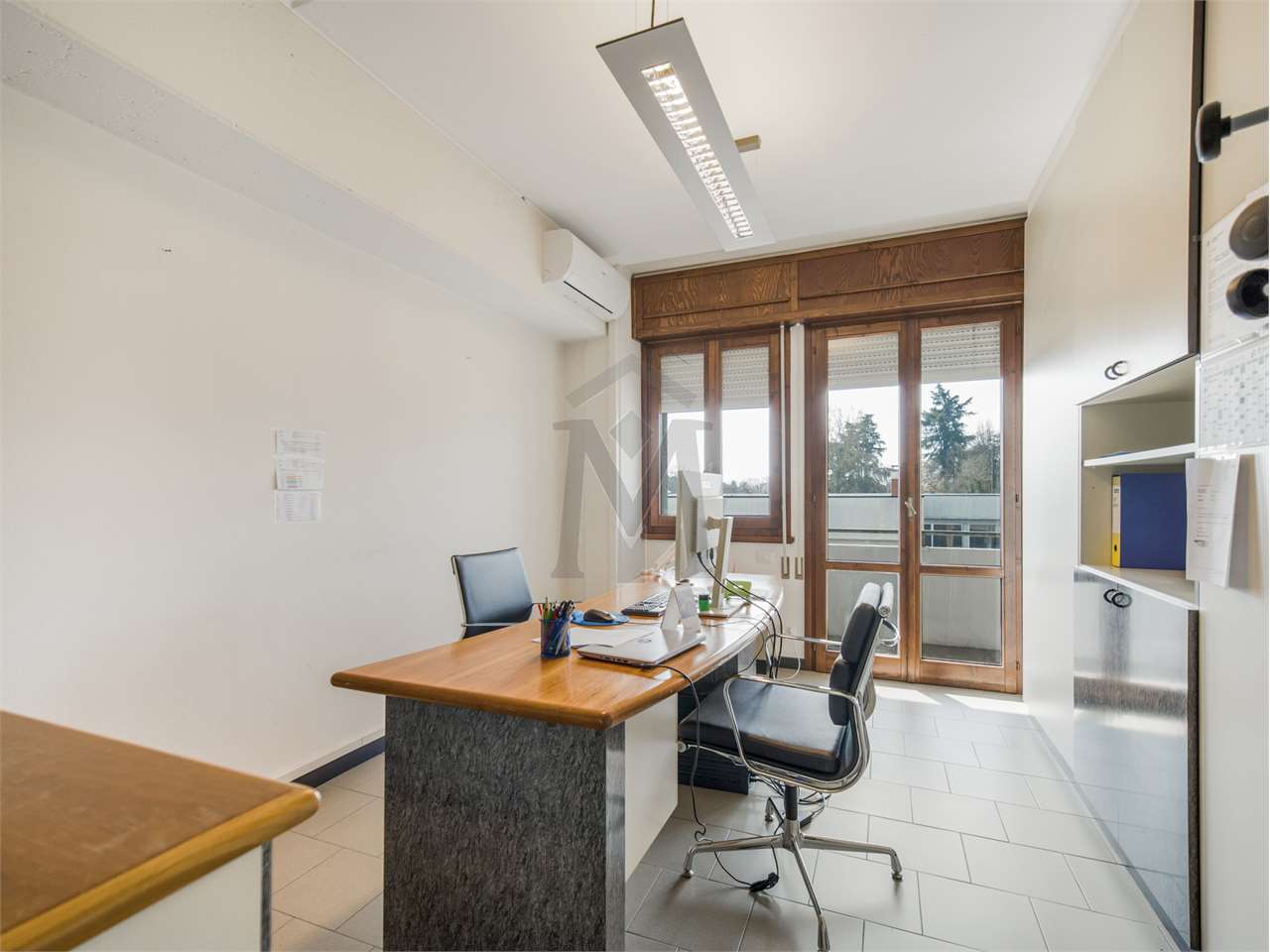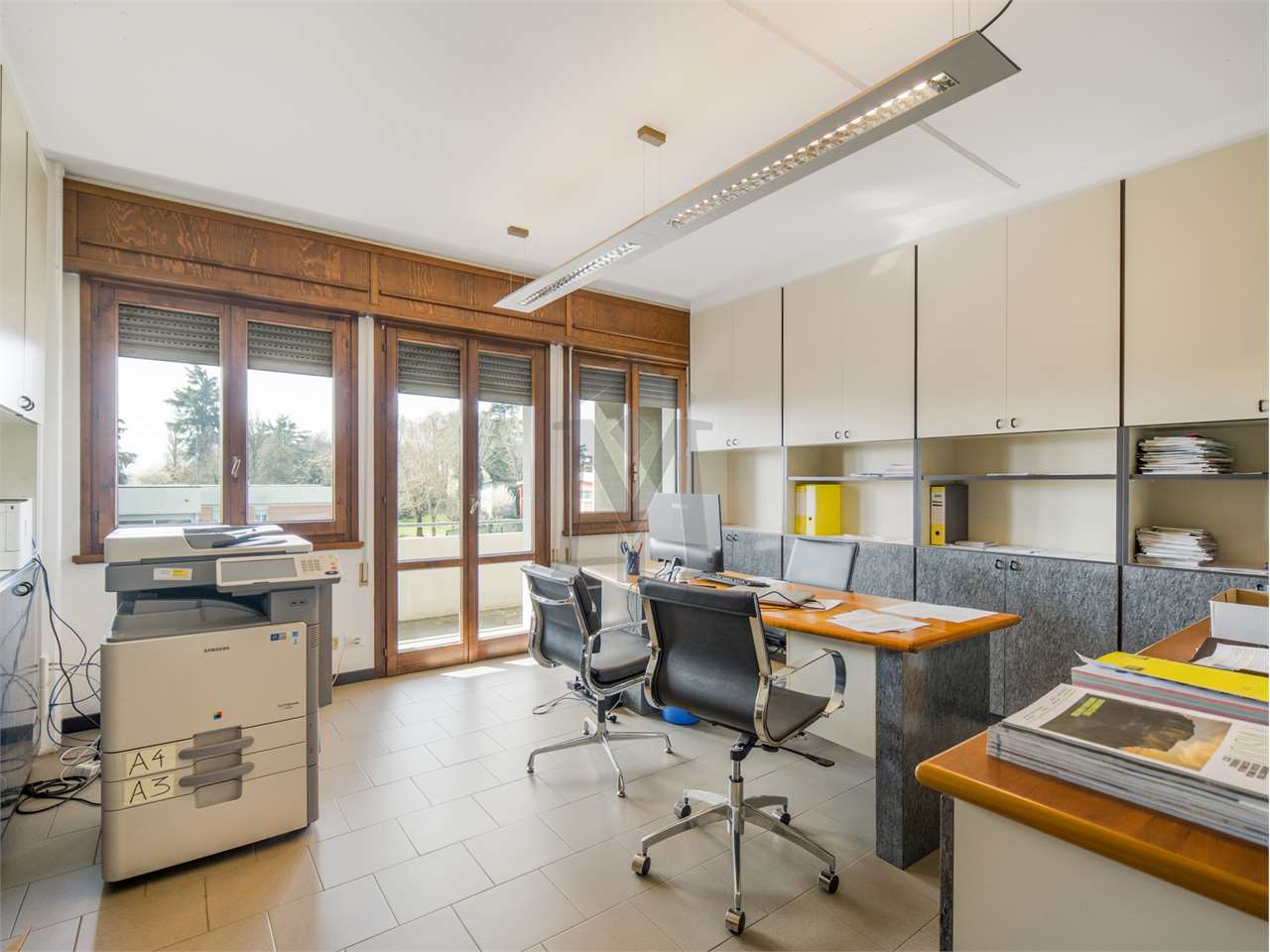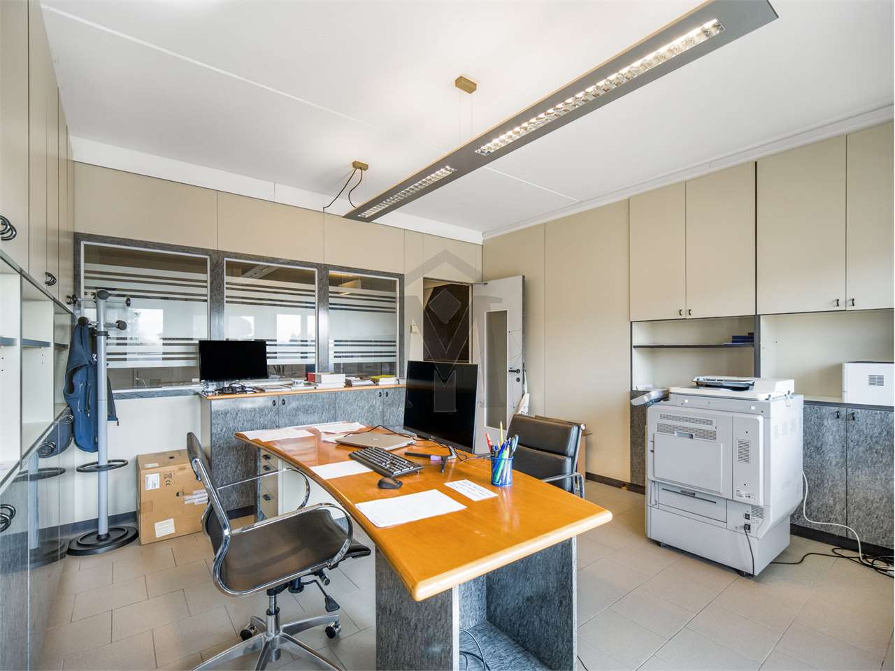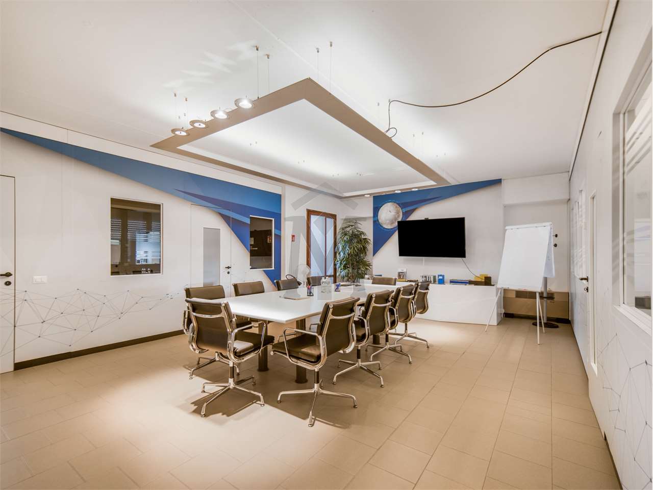 Al piano terra si trova un grande magazzino con ampio portone d’accesso e con un altezza di metri 5, completo di bagno. Il piano superiore, facilmente raggiungibile sia tramite scala interna che con ascensore, è dedicato alla parte direzionale e si compone di cinque uffici, un comodo corridoio di collegamento, una sala riunioni e due bagni.