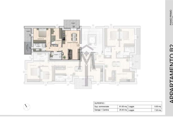 Completano la proprietà un posto auto al piano interrato e una cantina. È inoltre disponibile la possibilità di acquistare un garage, sempre al piano interrato, al prezzo di € 15.000.