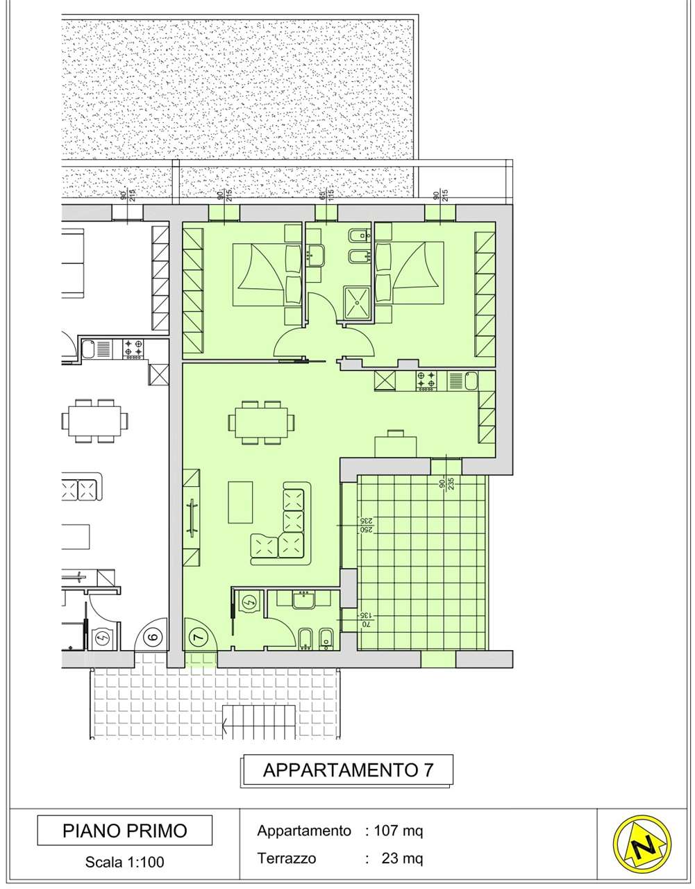 Nella zona di Via Settembrini – Buco del Signore proponiamo in vendita un appartamento di 107 mq, al primo piano, servito da ascensore, in palazzina di sole 12 unità abitative. L’immobile è composto da: ingresso su splendida zona giorno, con cucina a vista, e terrazzo di 23 mq con esposizione ad est, due camere da letto matrimoniali e due bagni.