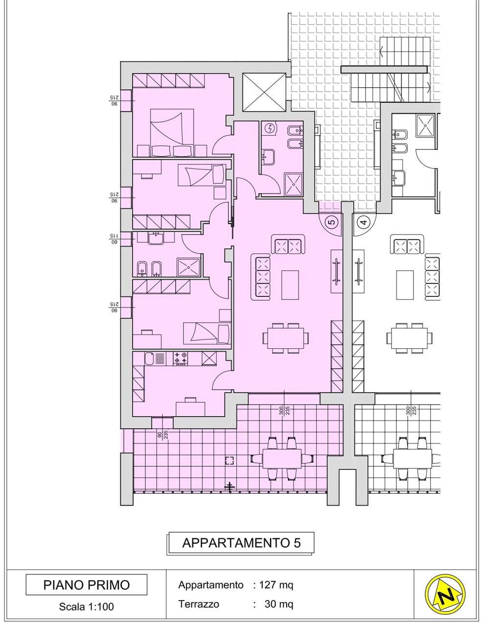 Nella zona di Via Settembrini – Buco del Signore proponiamo in vendita un appartamento di 127 mq, al primo piano, servito da ascensore, in palazzina di sole 12 unità abitative. L’immobile è composto da: ingresso su splendida zona giorno, con cucina separata, e terrazzo di 30 mq con esposizione a sud, tre camere da letto, di cui una matrimoniale e due singole, e due bagni.