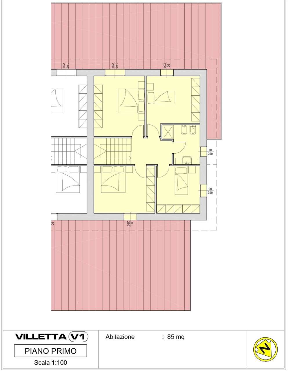 Al primo piano si sviluppa la zona notte, composta da quattro camere da letto ben illuminate e da un unico bagno spazioso, pensato per soddisfare le esigenze quotidiane della famiglia.