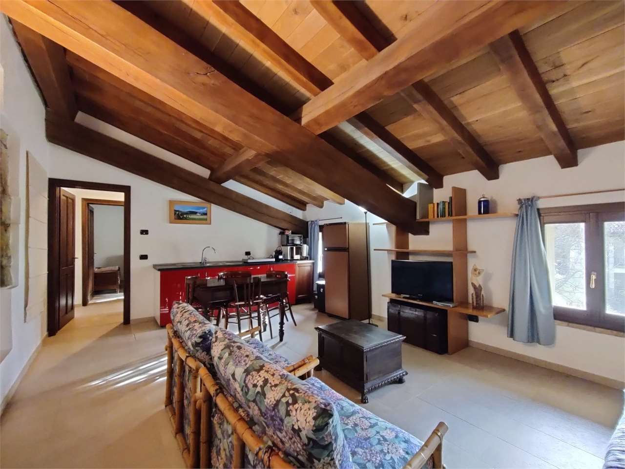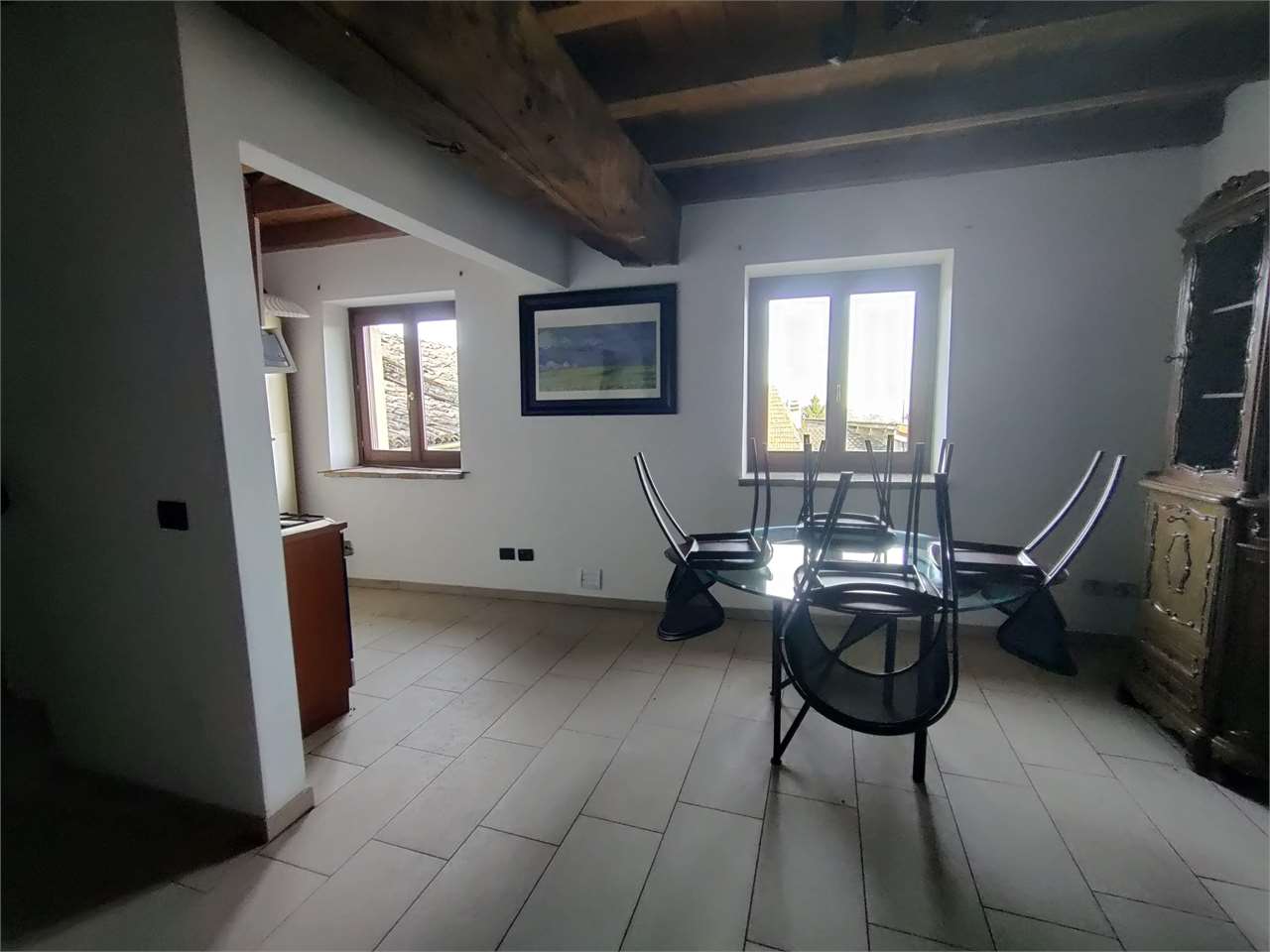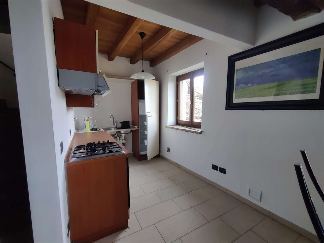 Immobile 3: soggiorno con angolo cottura e termo-camino; al piano secondo due stanze e bagno. Richiesta 550€.